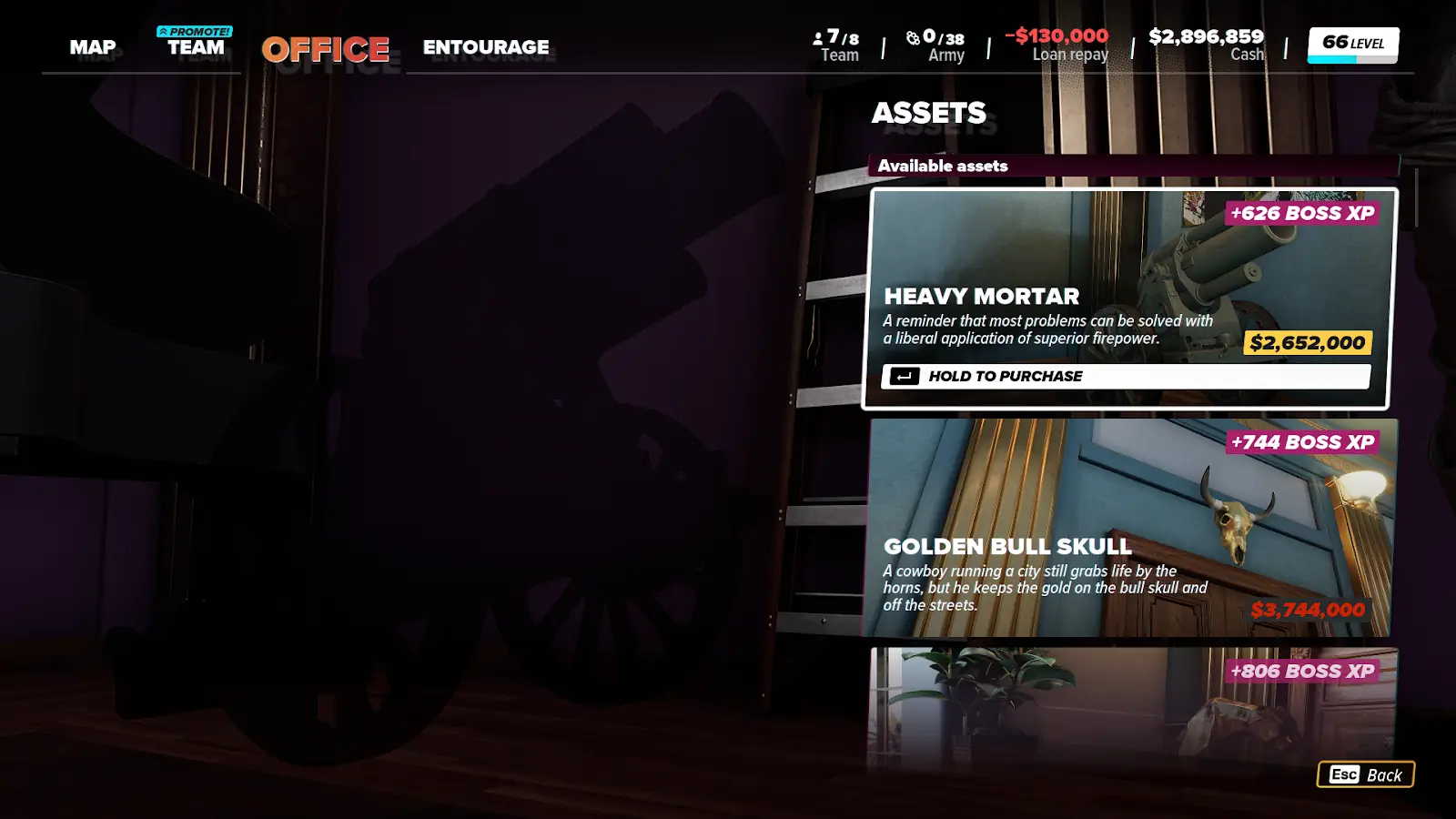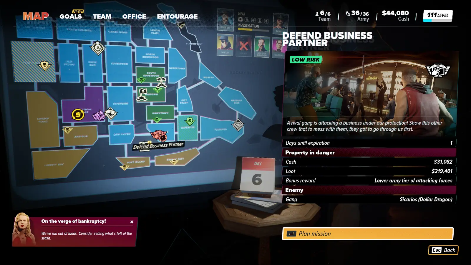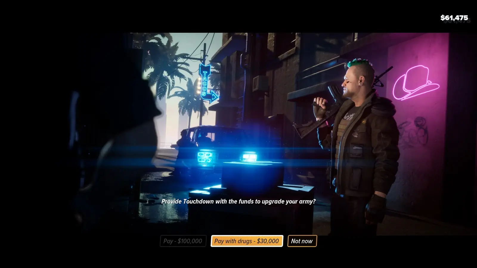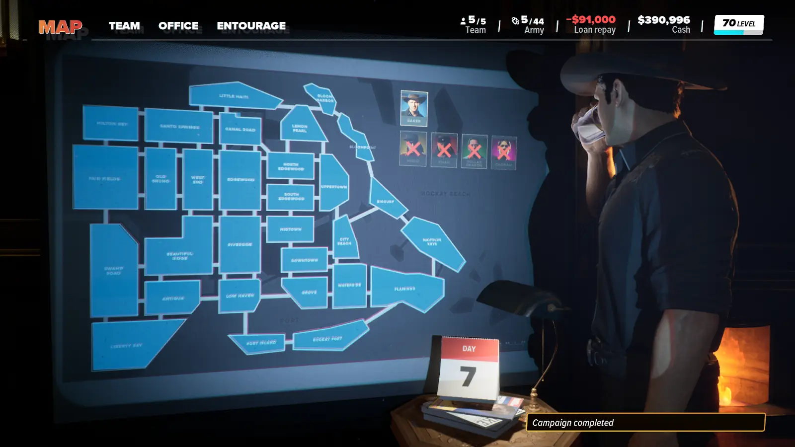 Combine that with the upgrades that gave me extra starting cash and all of the campaign’s hurdles became easy to climb over, the amount of costs I had to pay were massively reduced and for the ones that still existed like planning the big heists, recruiting the troops and upgrading the army I could more than cover the costs, or in the rare instances where I couldn’t I could just take out a loan to keep the momentum going knowing that I would have no trouble paying it back thanks to the rewards from big heists and storming final turfs.