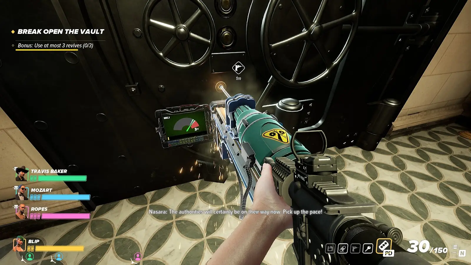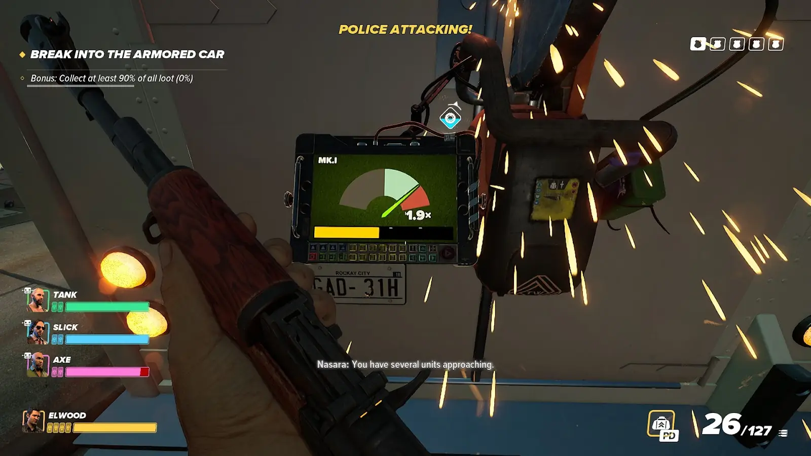 Just like your soldiers any heisters in your crew that die on the job stay dead, and if Travis dies your whole run is over, as a risk/reward element having Travis with you will boost the value of your loot by half, a feature called Baker’s Bonus. Wounded heisters that you leave behind will also go missing, with a chance for them to come back later, need rescuing in a mission, or turn up dead.