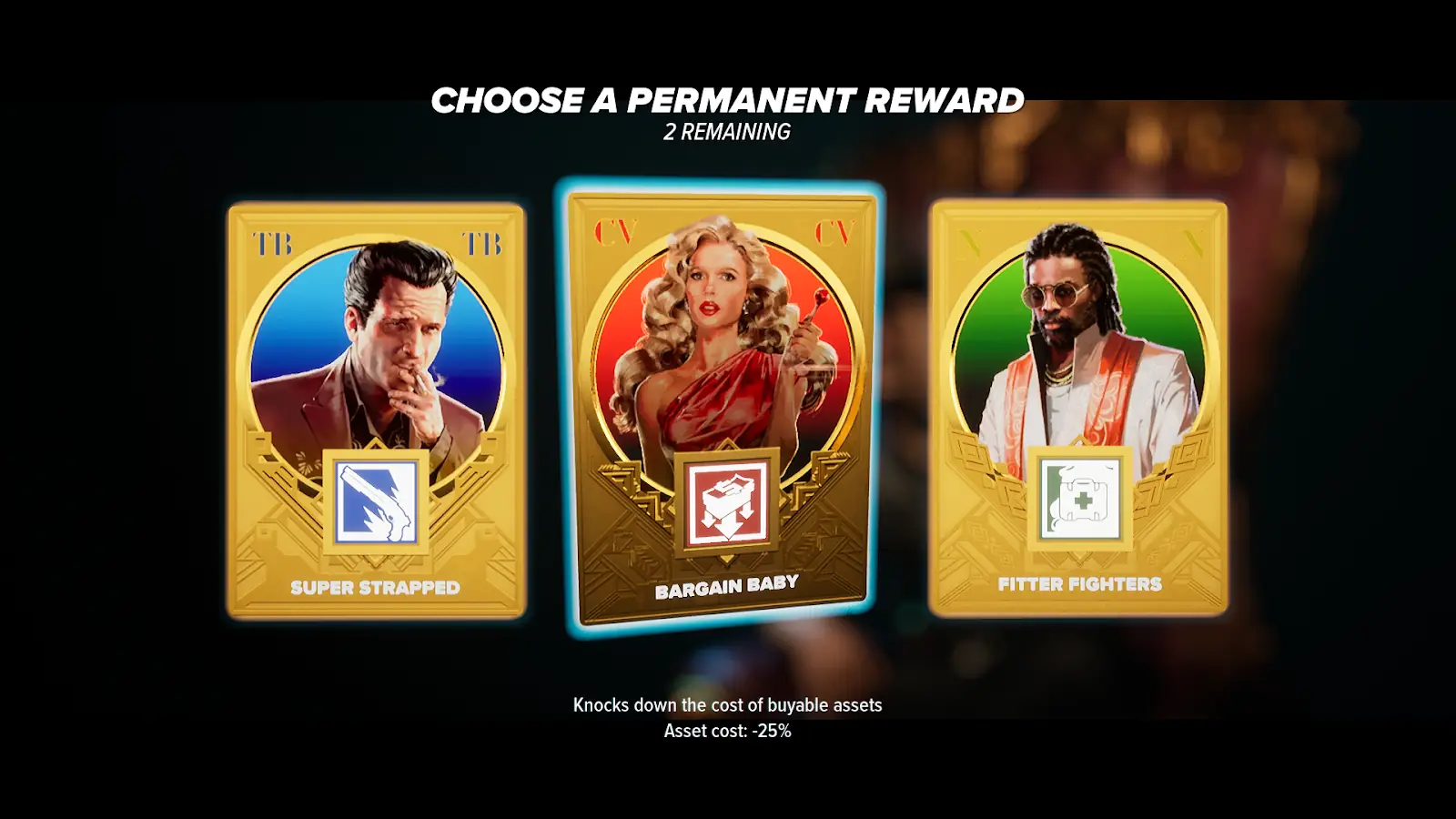 Having the upgrades that gave me a better Heist crew at the start of my runs also massively changed the gameplay dynamic, Heists were now much more manageable and I was able to save most of the profits for myself or spend them on the war rather than having to dump them on trying to build a competent crew, this better crew bonus also meant that I almost always started with a Heister called Mozart who comes with a silenced AK, this turned most of the stealth missions that involved gangs (who you don’t get strikes for killing) into a breeze, another common crew member was Theresa, whose automated Sentry Gun made mincemeat of hostiles in loud, giving me a lot more confidence on those jobs too.