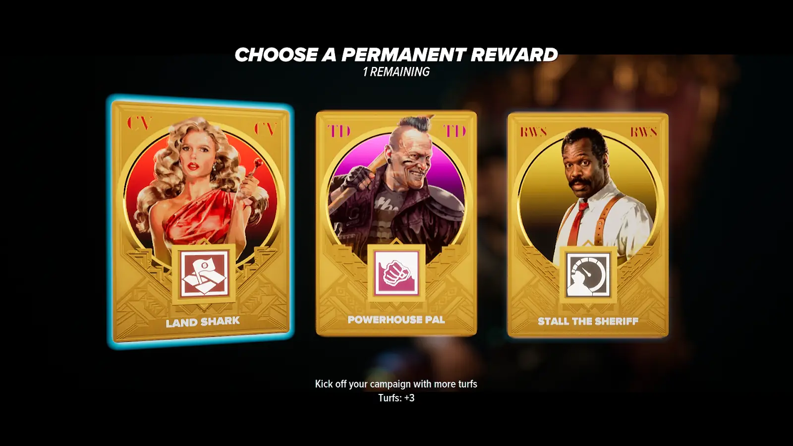 The other upgrades though did tip the balance from the game becoming manageable and fair to too easy, having more starting cash and troops meant that I could totally ignore heisting except for the Big Heists and their associated setups, funding the war effort through turf war victories and loans when they weren’t bringing in revenue fast enough, essentially allowing me to ignore half of the gameplay. By my 15th win in a row I did feel the game was too easy and started to miss the thrill of risk and getting my ass kicked, I stayed on normal difficulty to make getting all those reward characters simple but I decided that for subsequent runs I’d be bumping the difficulty up a notch so Travis and Co. could go back to being underdogs, making those subsequent wins ever sweeter.