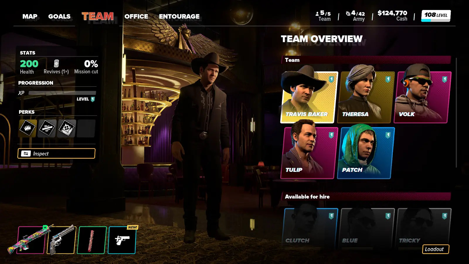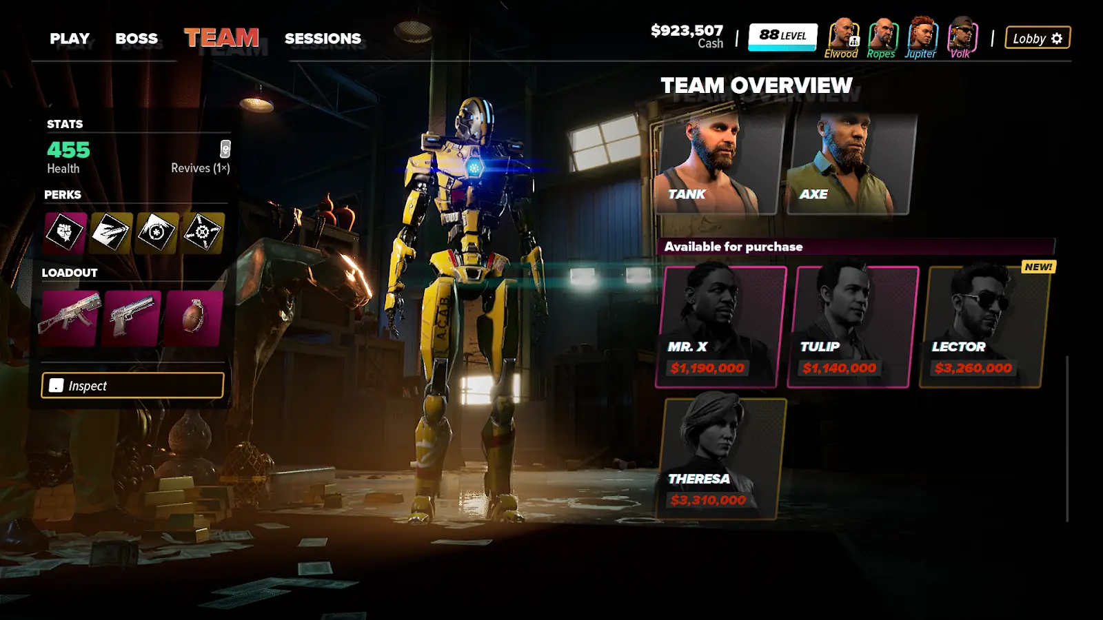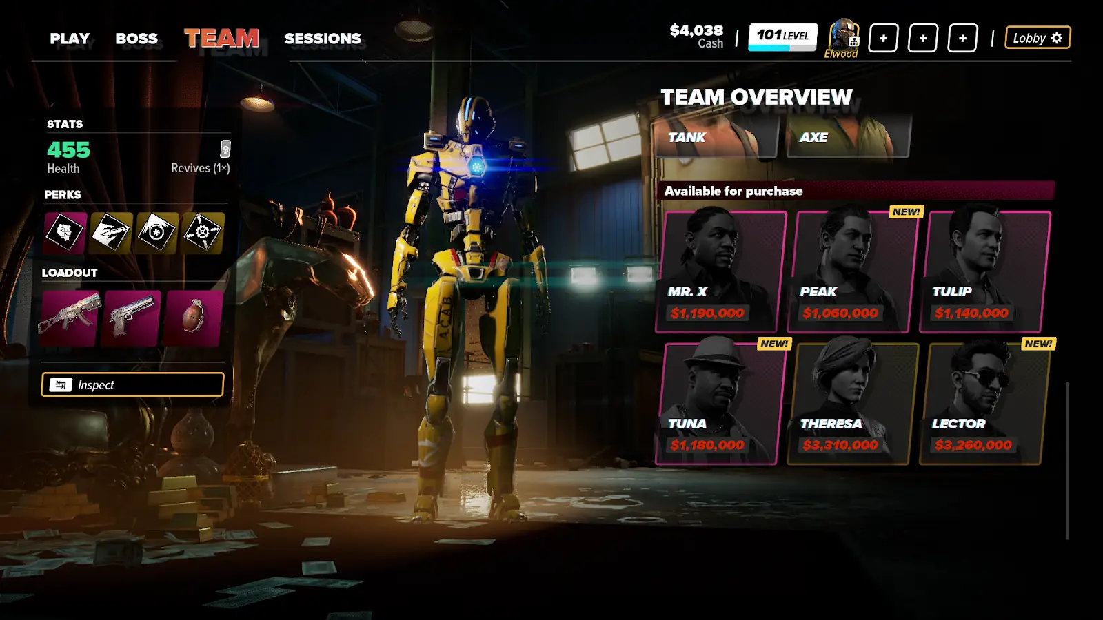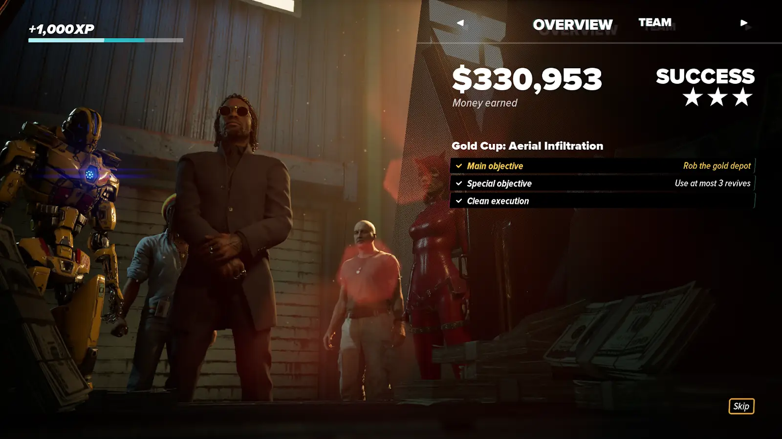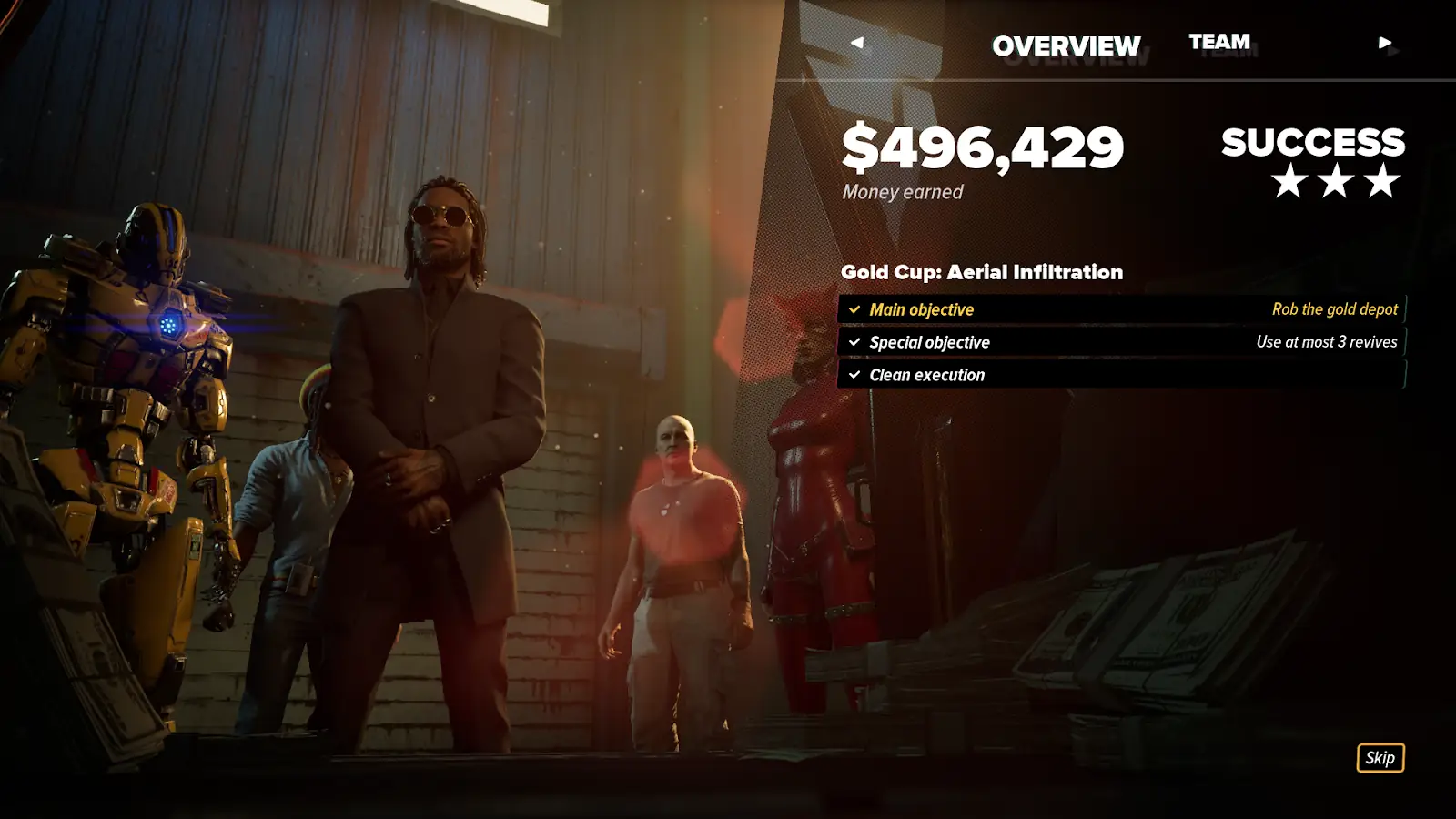 From these heists you get cash, which you can spend on 2 things: Your boss and your team.