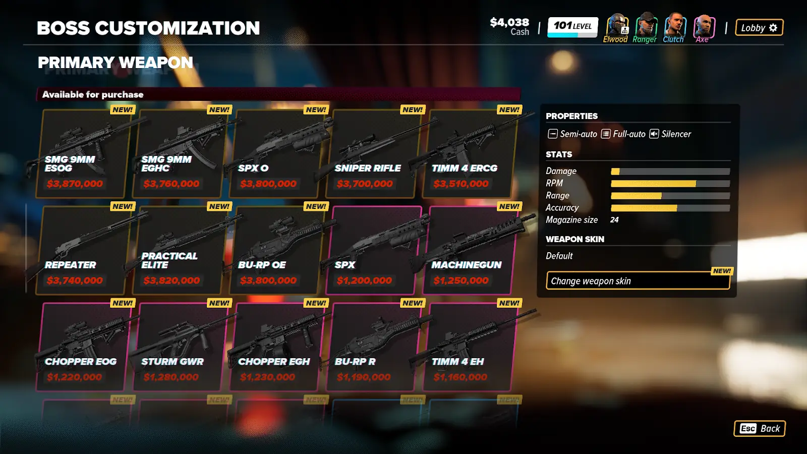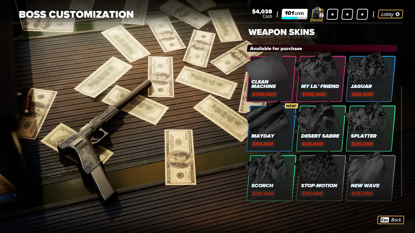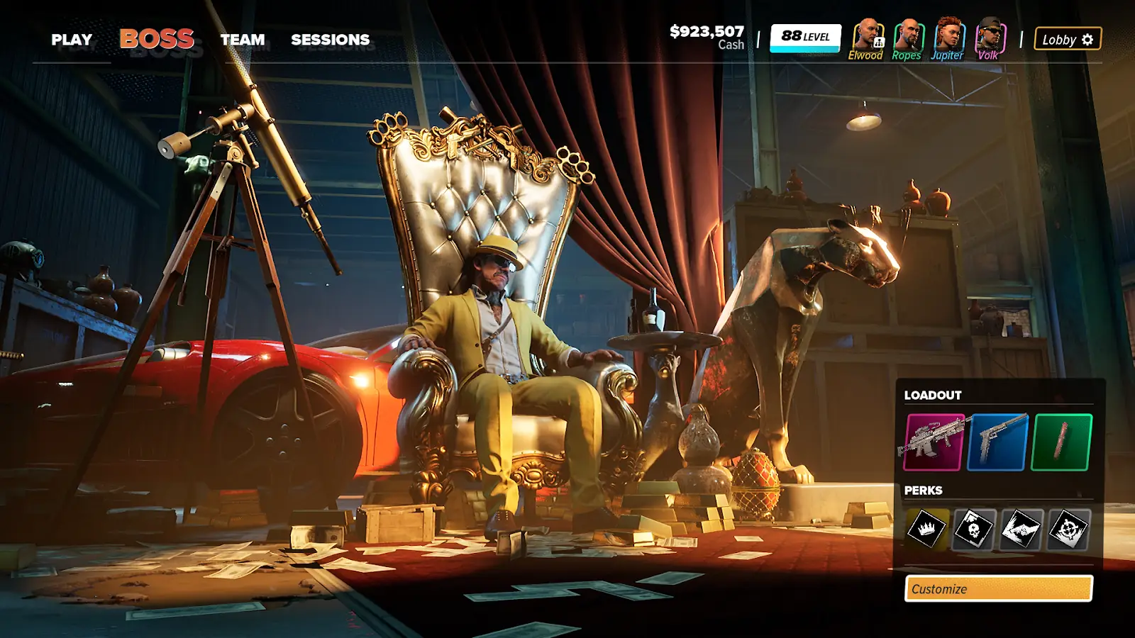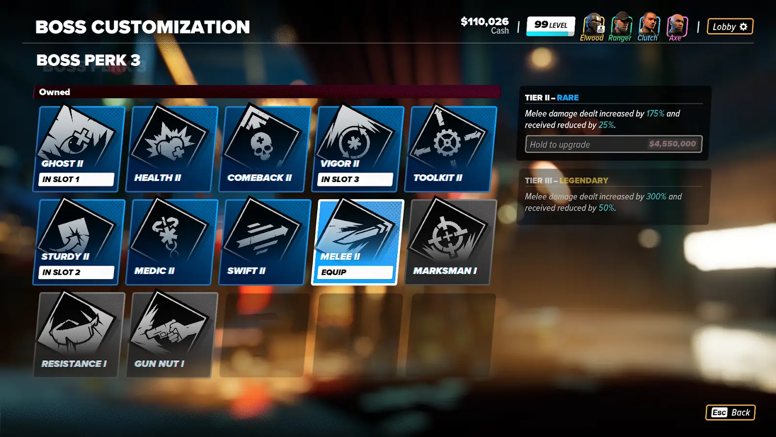 Even after reaching Tier 2 on all perks and reaching Level 101, about ¾ of the way to max level, I still had an absurdly tall mountain to climb, a dizzying array of weapons left to buy and unlock each costing a fortune, a bunch of the heisters and boss characters still on the menu, and all those weapon skins…