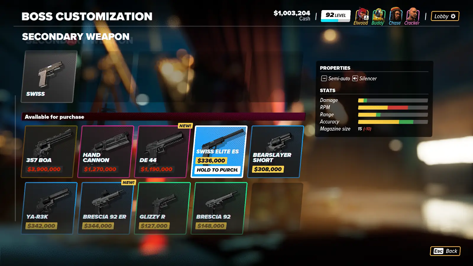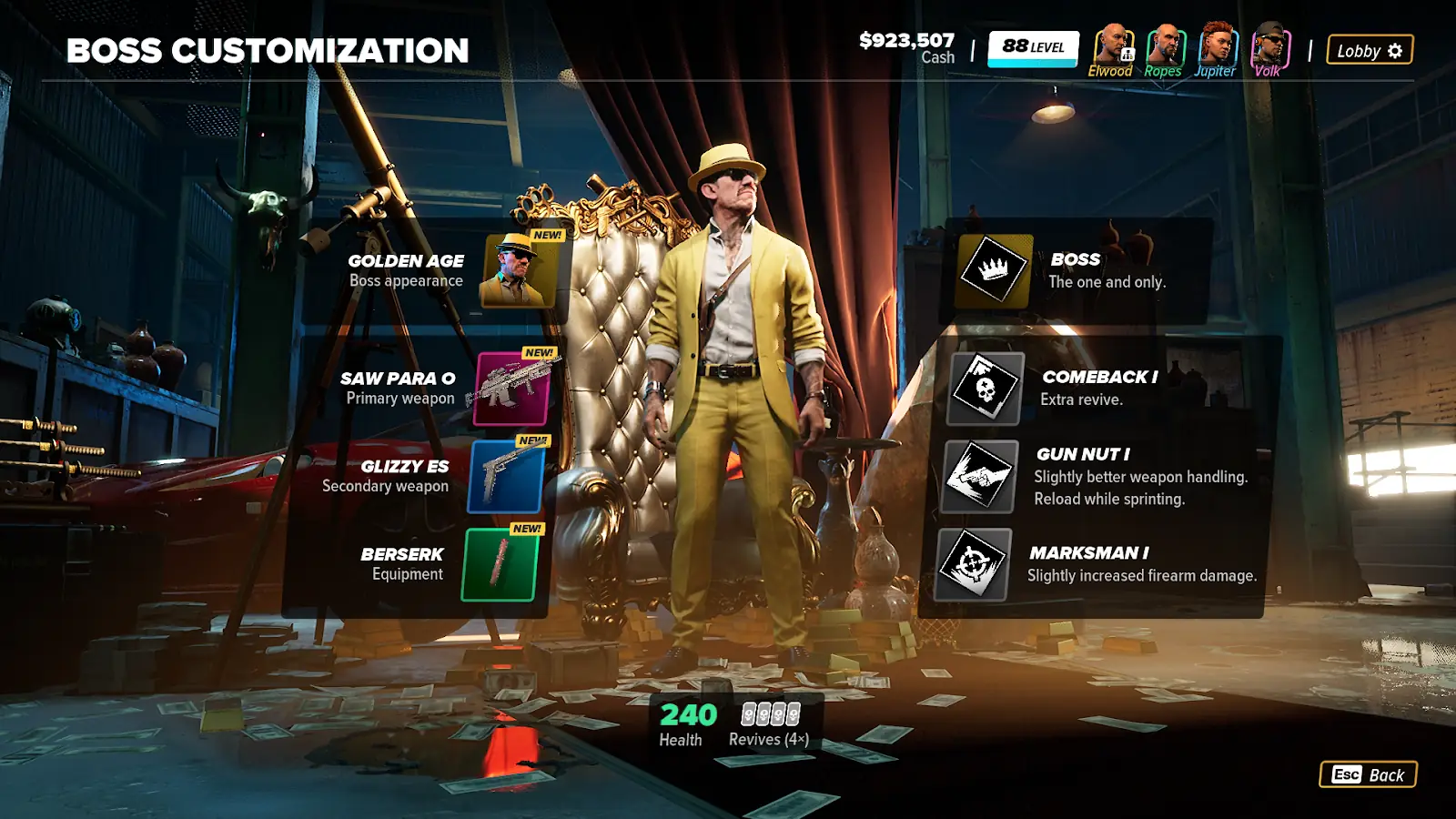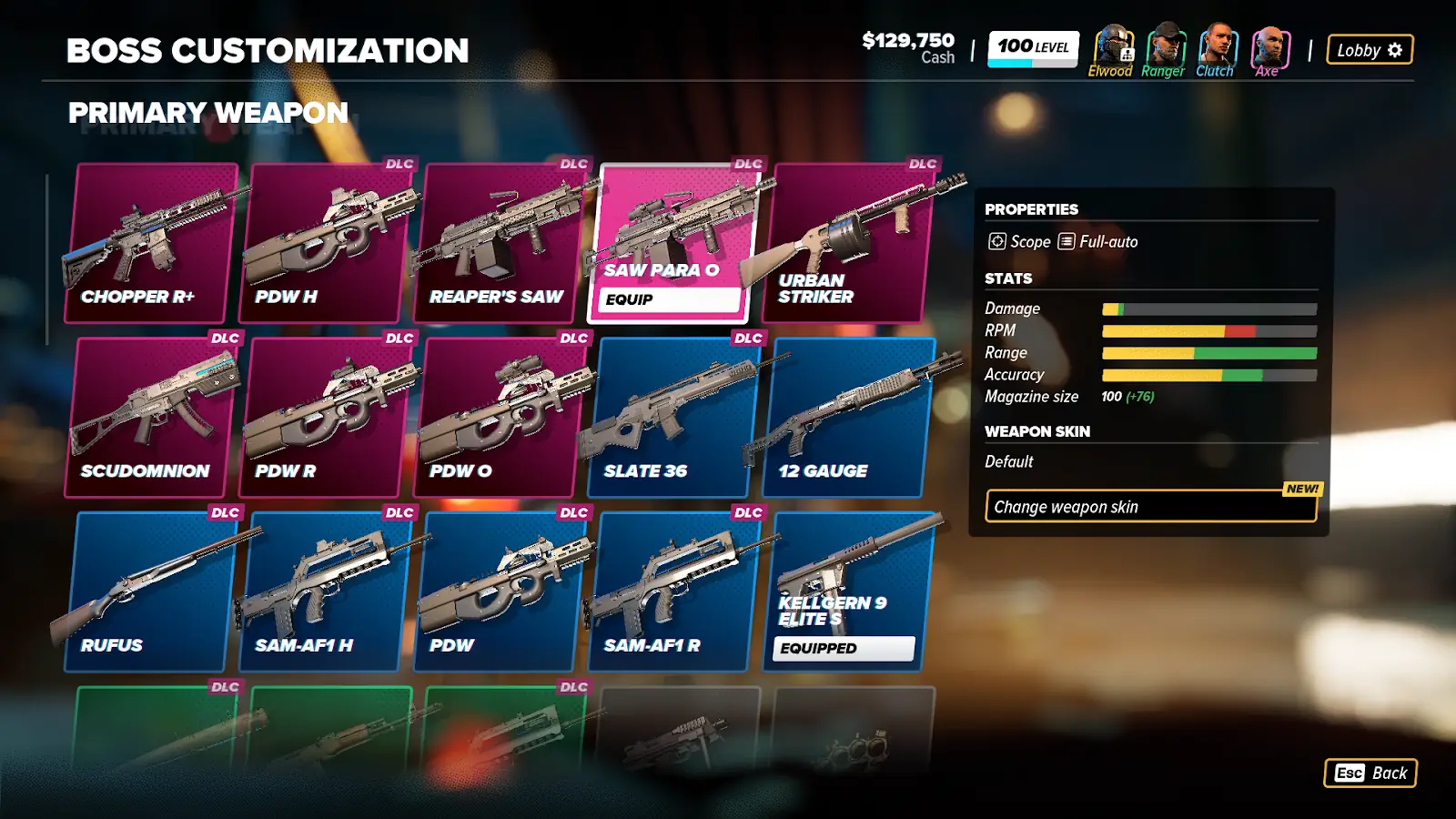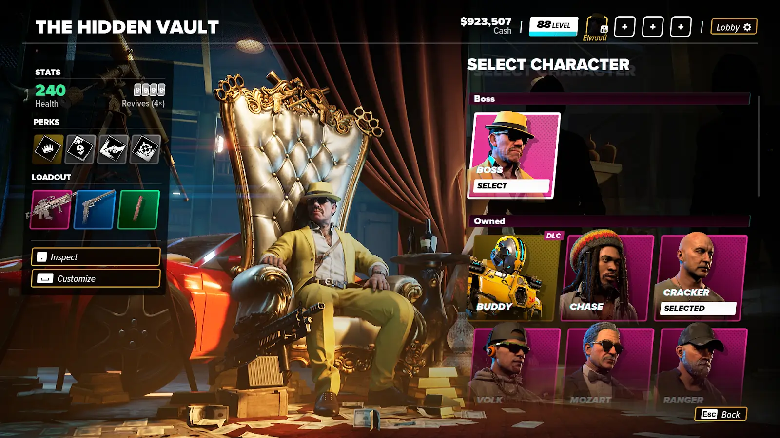 Even after reaching Tier 2 on all perks and reaching Level 101, about ¾ of the way to max level, I still had an absurdly tall mountain to climb, a dizzying array of weapons left to buy and unlock each costing a fortune, a bunch of the heisters and boss characters still on the menu, and all those weapon skins…
