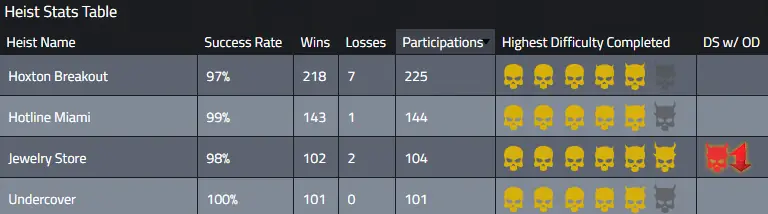 Now you might think this level of repetition is batshit crazy, and you’d be right, but it’s something I’m no stranger to. Back in the days of PAYDAY 2 my grindy autopilot heists of choice were Hoxton Breakout and Hotline Miami, with an occasional sprinkling in of Undercover and max difficulty stealth heists of Jewelry Store for the early levels, just look at how many times I played those…