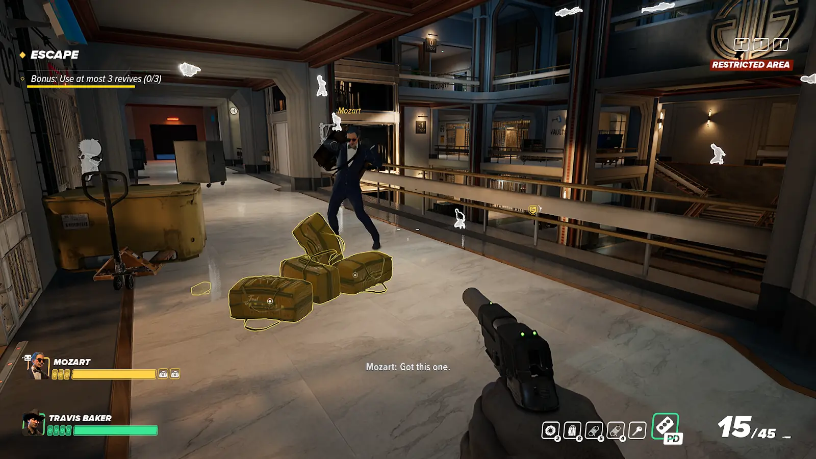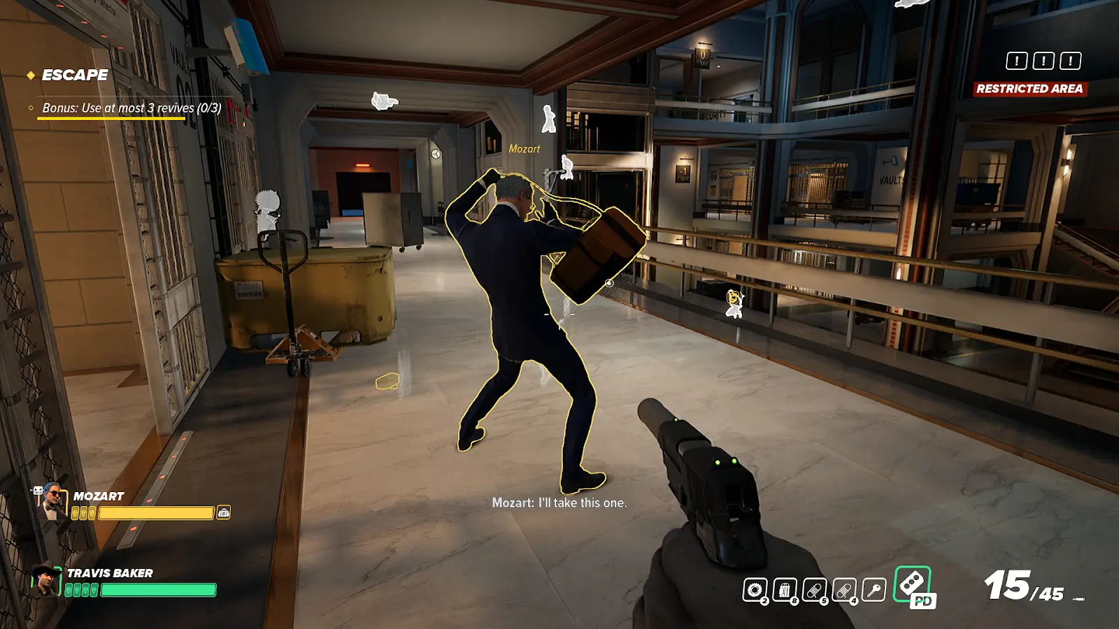 They’ll do all of this on their own initiative, but they can also be directly ordered to do a range of things in both stealth and loud: Subduing guards, killing specific targets, tying up hostages, bagging up the loot and carrying and delivering those bags.