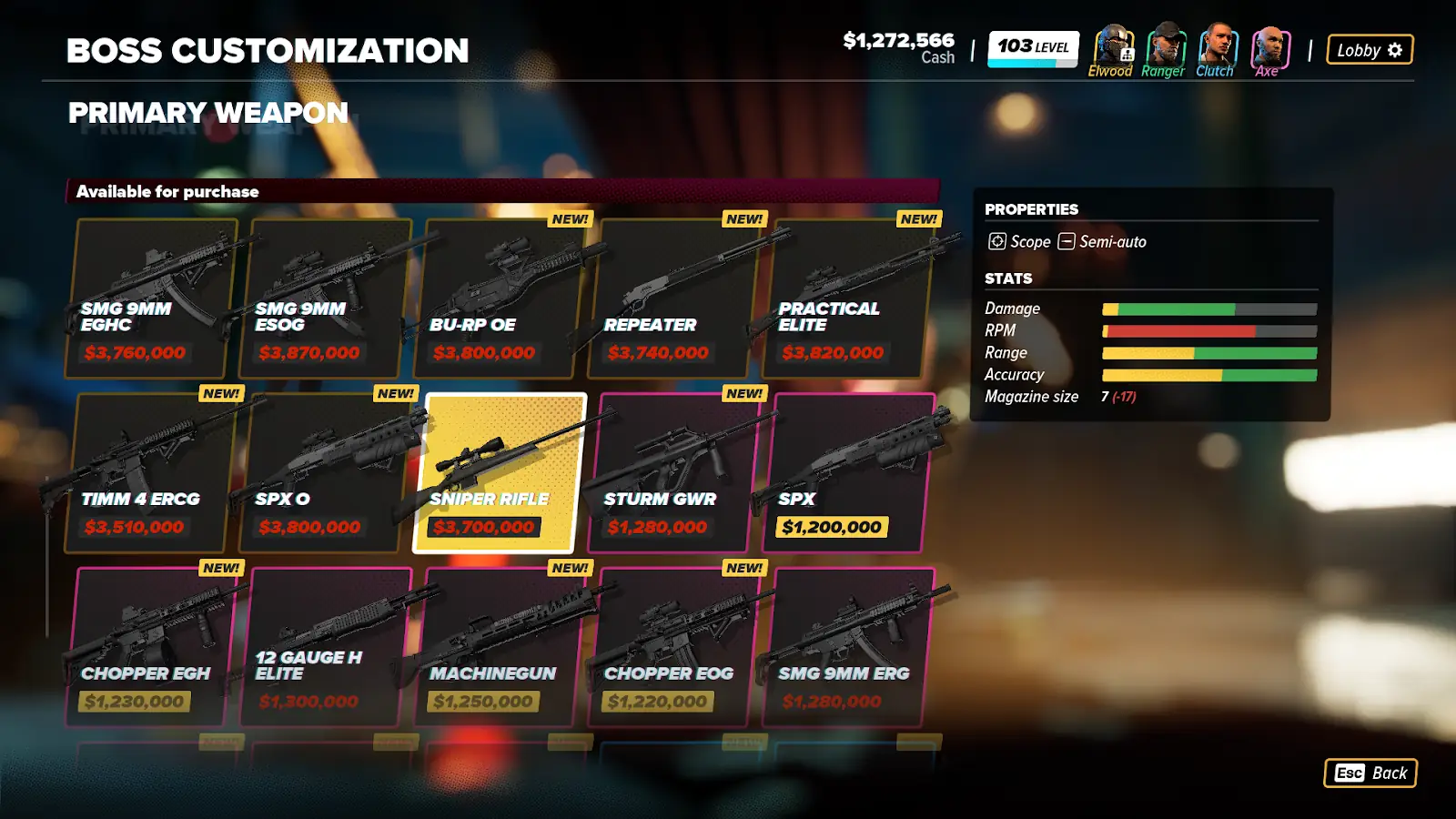 Focusing on heisters also actually did allow me to circumvent some of those weapon costs too, for example, why buy a Sniper Rifle for 3 million dollars when I can hire Peak, a heister who starts with that same Sniper Rifle, for 1 million?