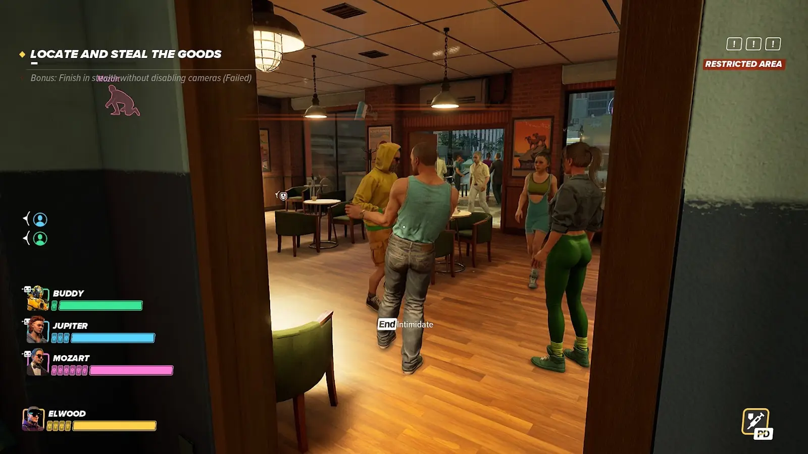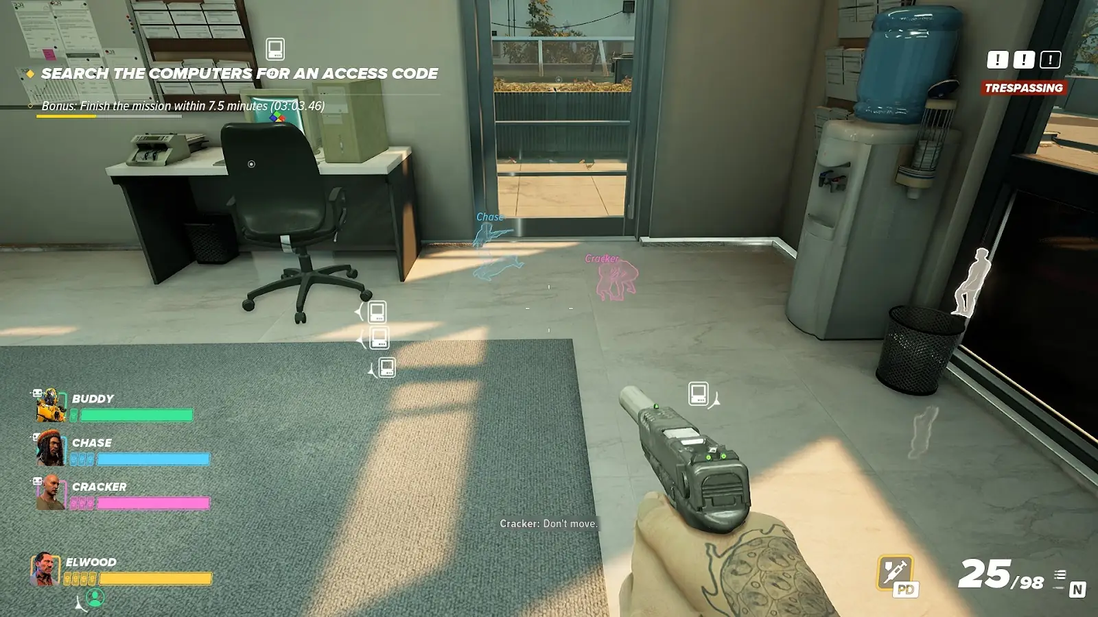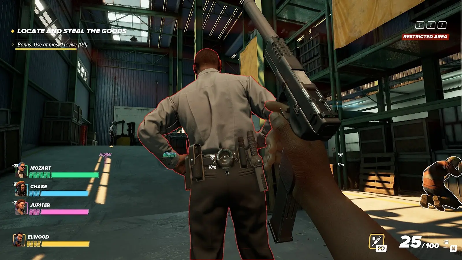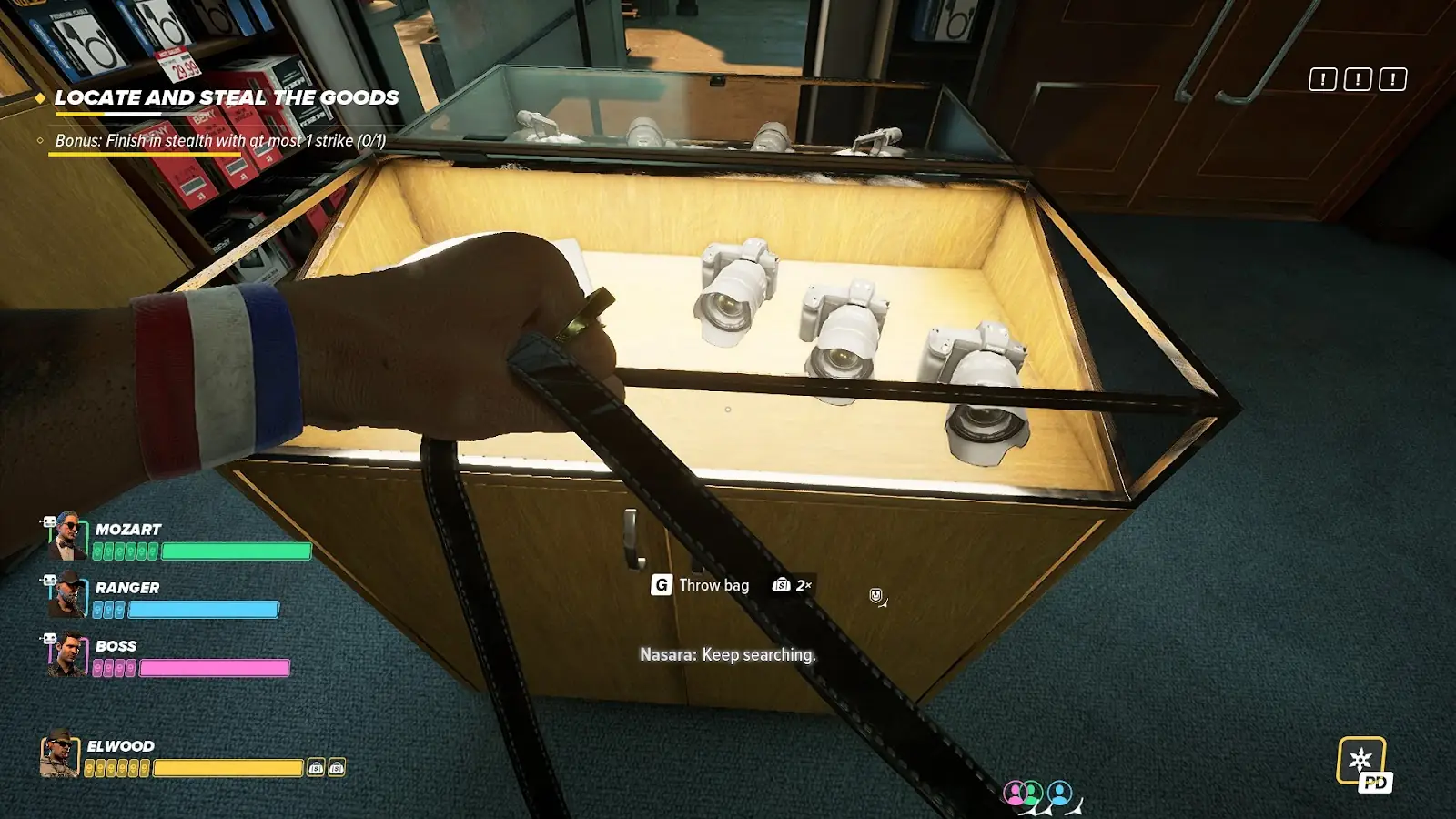 In Crime Boss the AI will still hang back by default in stealth but you can order them to come with you, if you bring them to the loot they’ll bag it up for you, if you toss a bag on the ground they’ll go and grab it and deliver it, if there’s a lock in the way they’ll pick it,