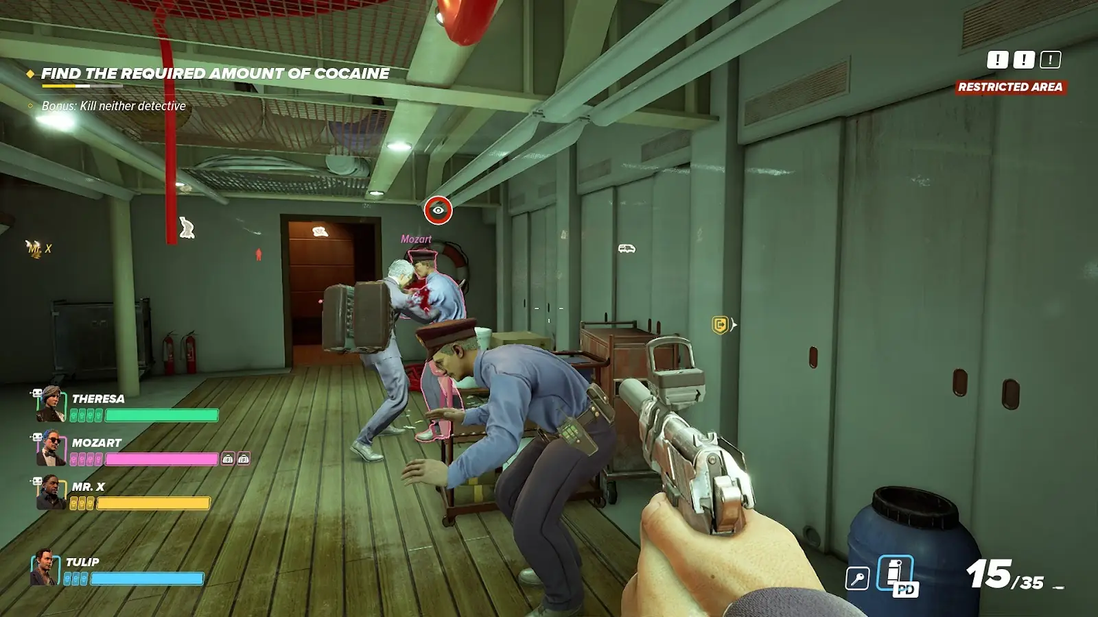 Gameplay is split between “Loud” and “Stealth”, in Loud you have to fend off escalating waves of Cops augmented by occasional Special Units or “Specials”, the staples being the self-explanatory Shield (he has a big riot shield), the Taser who true to his name will zap you locking you in place and making you shoot randomly if you get too close, the Splinter Cell knockoff called the Cloaker who can knock you down instantly with a kick, a tanky shotgunner/machinegunner called the Bulldozer and then the Snipers, oh so many fucking snipers…