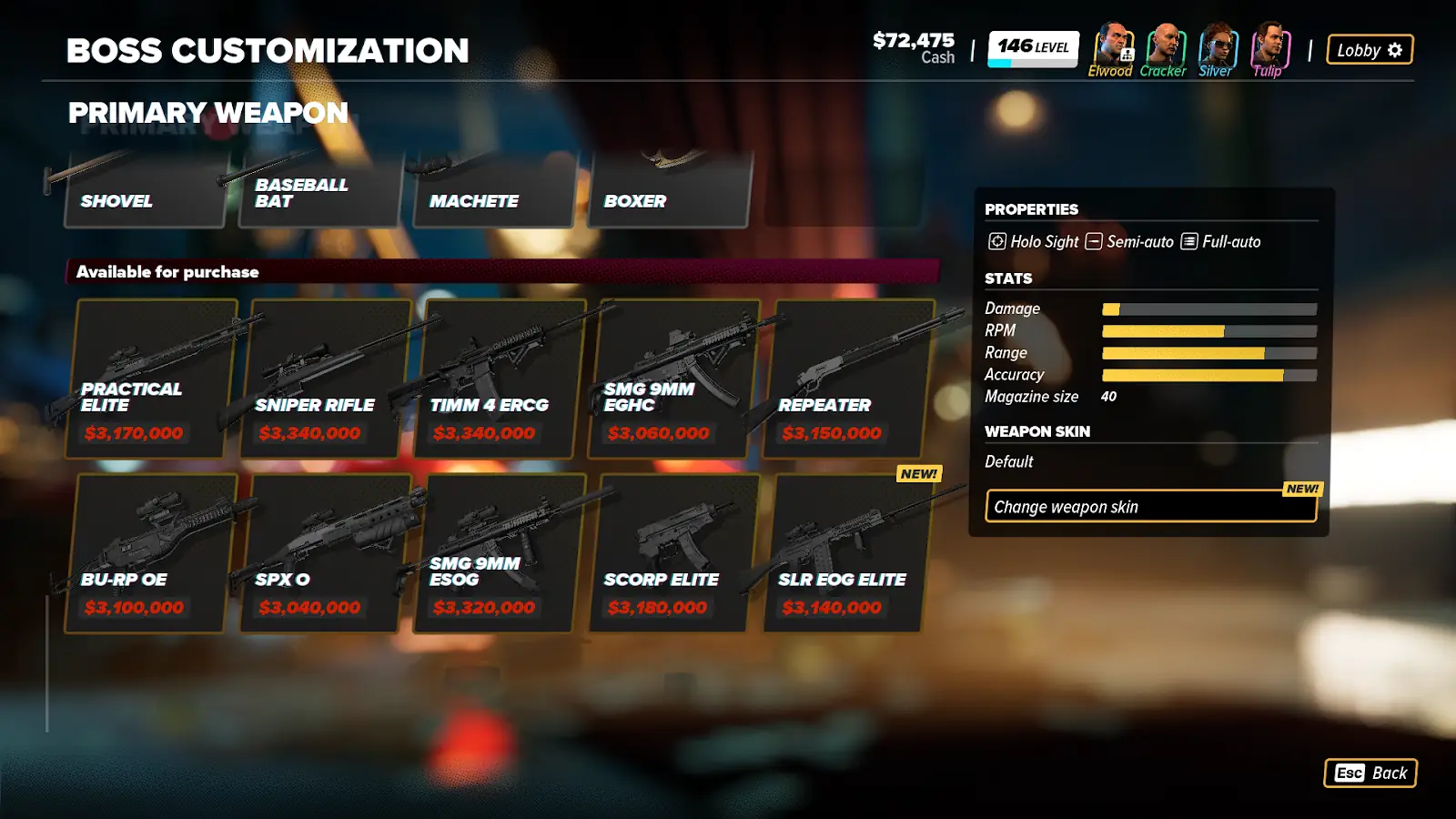 Believe it or not this absurd grindfest was actually easier than it could’ve been, having all the DLC packs meant that I had 2 weapon packs, the Heavy Hitters Pack and the Tactical Weapon Pack, which add several mid and high tier weapons to the game (2 pistols, 2 rifles, 3 shotguns, an SMG, an LMG and a melee weapon, with some of these having multiple variants), in Baker’s Battle you still need to buy them but in Multiplayer you get them for free, so the only things I needed to do to make my player character viable for more or less any scenario were buying some high tier heisters for playing with bots, a silenced SMG and silenced Pistol for stealth.