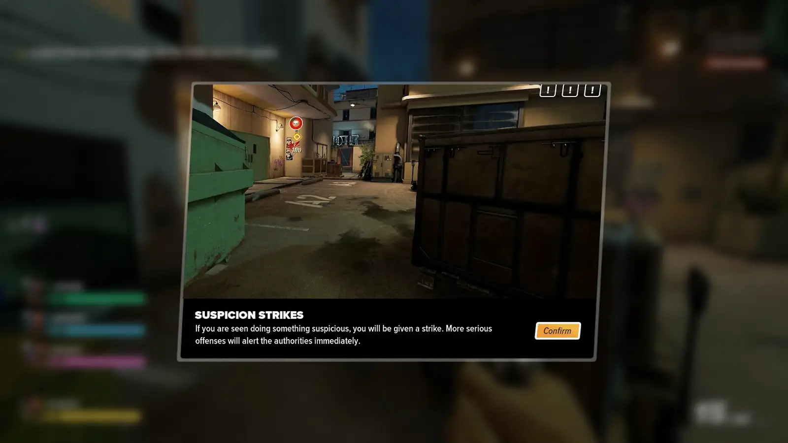 In PAYDAY you start in what’s called “casing mode” with your weapons holstered, guards and civilians won’t be suspicious of you unless they catch you in private areas of the map, to use your weapons you have to “mask up” and after this guards will start to become suspicious and civilians will start to panic on any sighting of you, once you mask up there’s no option to unmask, in Crime Boss you have the option to holster your weapons at any time