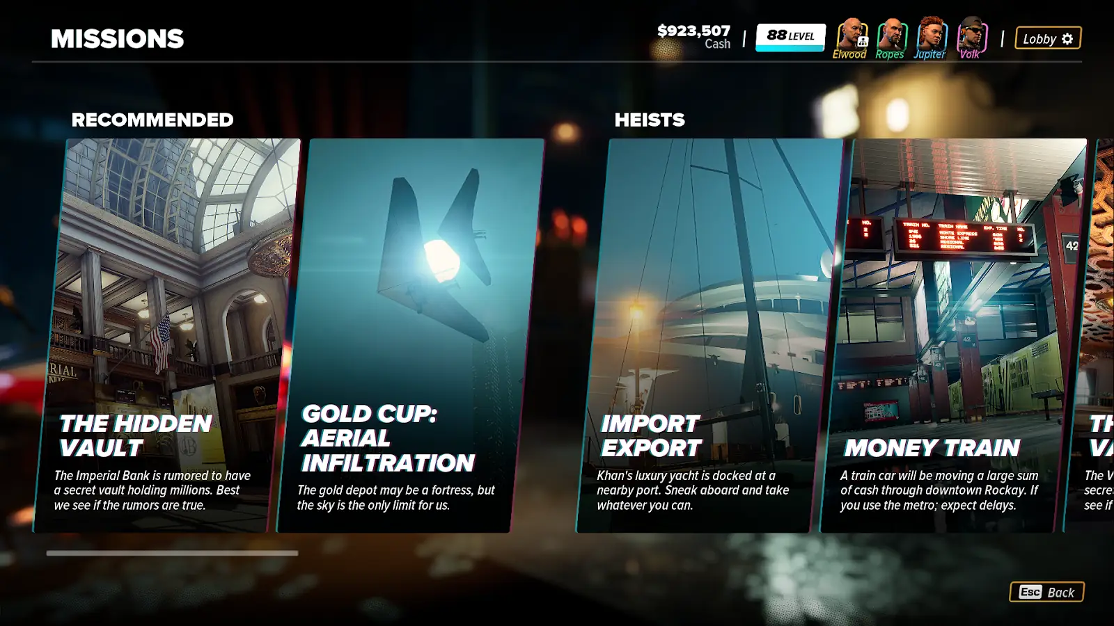 There are other heists that have this element of building variety too; One job, Hidden Vault, can take place in either the Vertigo Bank or the Imperial Bank,