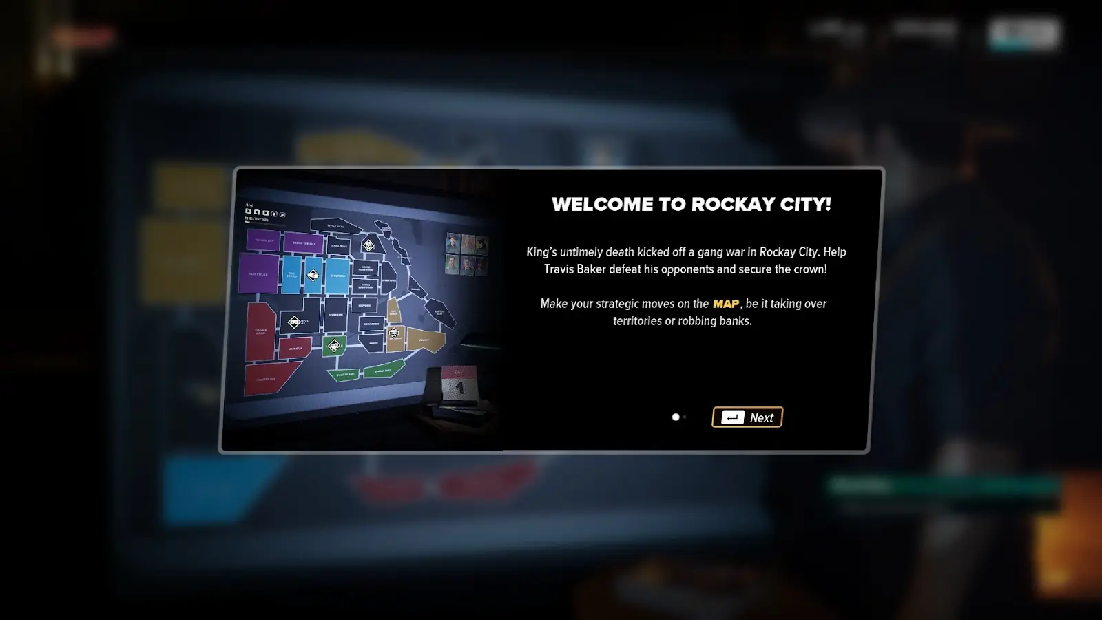 How it works is this: The setting is Rockay City, Florida, USA; The criminal kingpin of the city has just been blown up and your job is to make drug baron Travis Baker the new king, with the help of his business manager Casey, his fixer Nasara (Poitier’s character), his heist planner Gloves, his army commander Captain Touchdown and his army, the Graves.