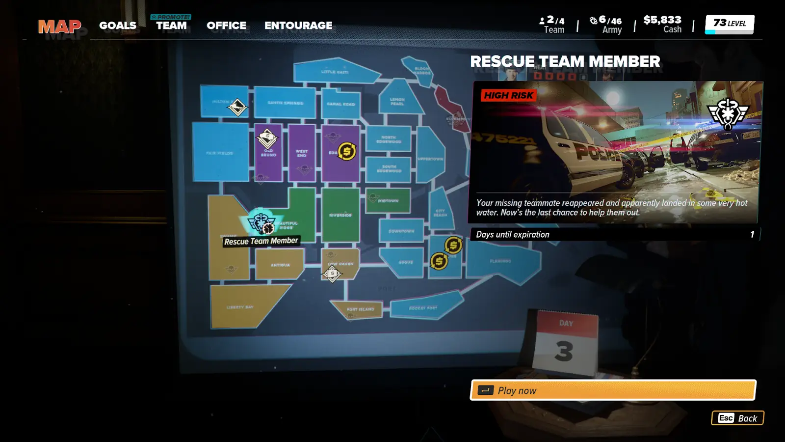 Playing on Hard meant the stakes were higher, I was still earning wins but I had to really fight for it. Touchdown got his ass handed to him several times, some turf attacks were lost, many turf attacks and defences were narrowly clinched with me as the last man standing, and on my third Hard mode run I botched a heist so bad my entire elite crew was killed; Ranger got himself shot upstairs while the rest of us were doing a search and rescue mission in a warehouse, when we went back up to help him the cops threw a grenade into the room and the rest was history.