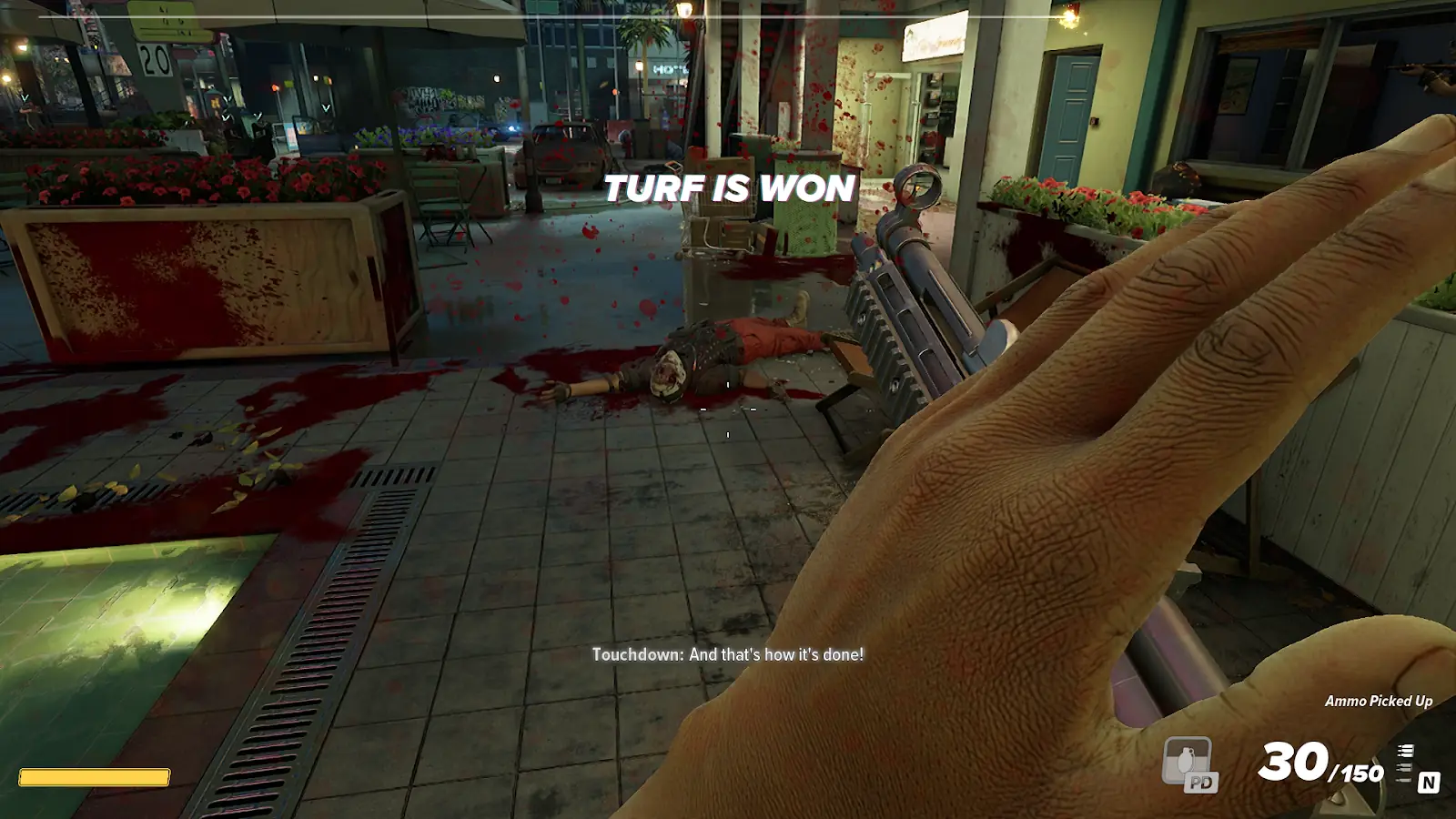 If you succeed in wiping out the enemy in time the turf stays yours, if Touchdown gets knocked down, time runs out, or you don’t play the defence before ending the day the turf is taken by the enemy, if you lose all of your turfs you’re dead.