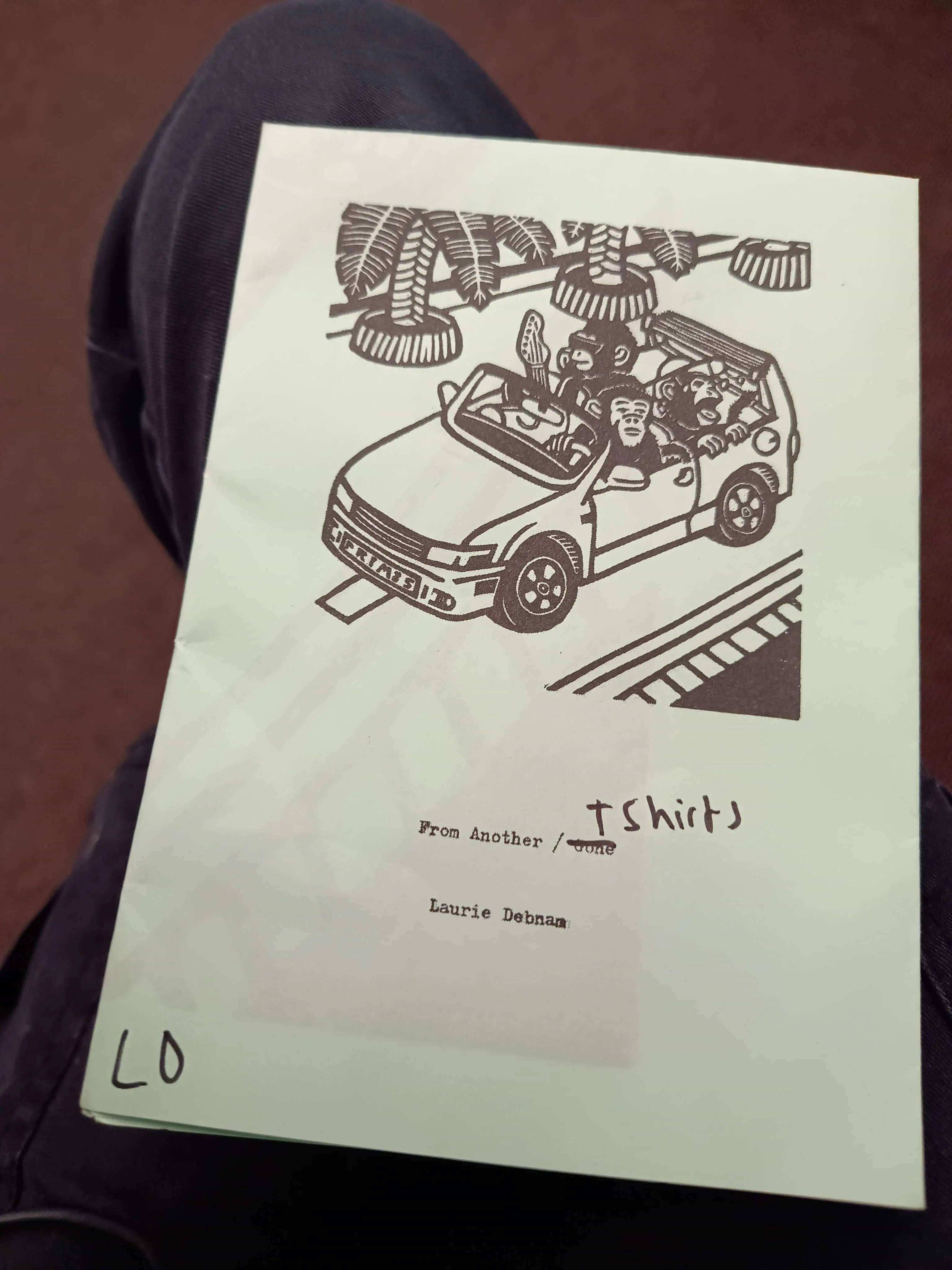 Then there’s more setlists, more pins, and another Vinyl (the last copy of electro pop artist Tatyana’s limited release of her album It’s Over) from Hongza as a thanks for paying for the mastering of his upcoming track Space Song I got (alongside shirts and pins) a great big recording board from his Coming of Age EP and a tote bag, then there’s 1 more zine from Laurie, which alongside some stories from his time on the road with George covers a kind of manifesto for his music, country made for Brits instead of Yanks.