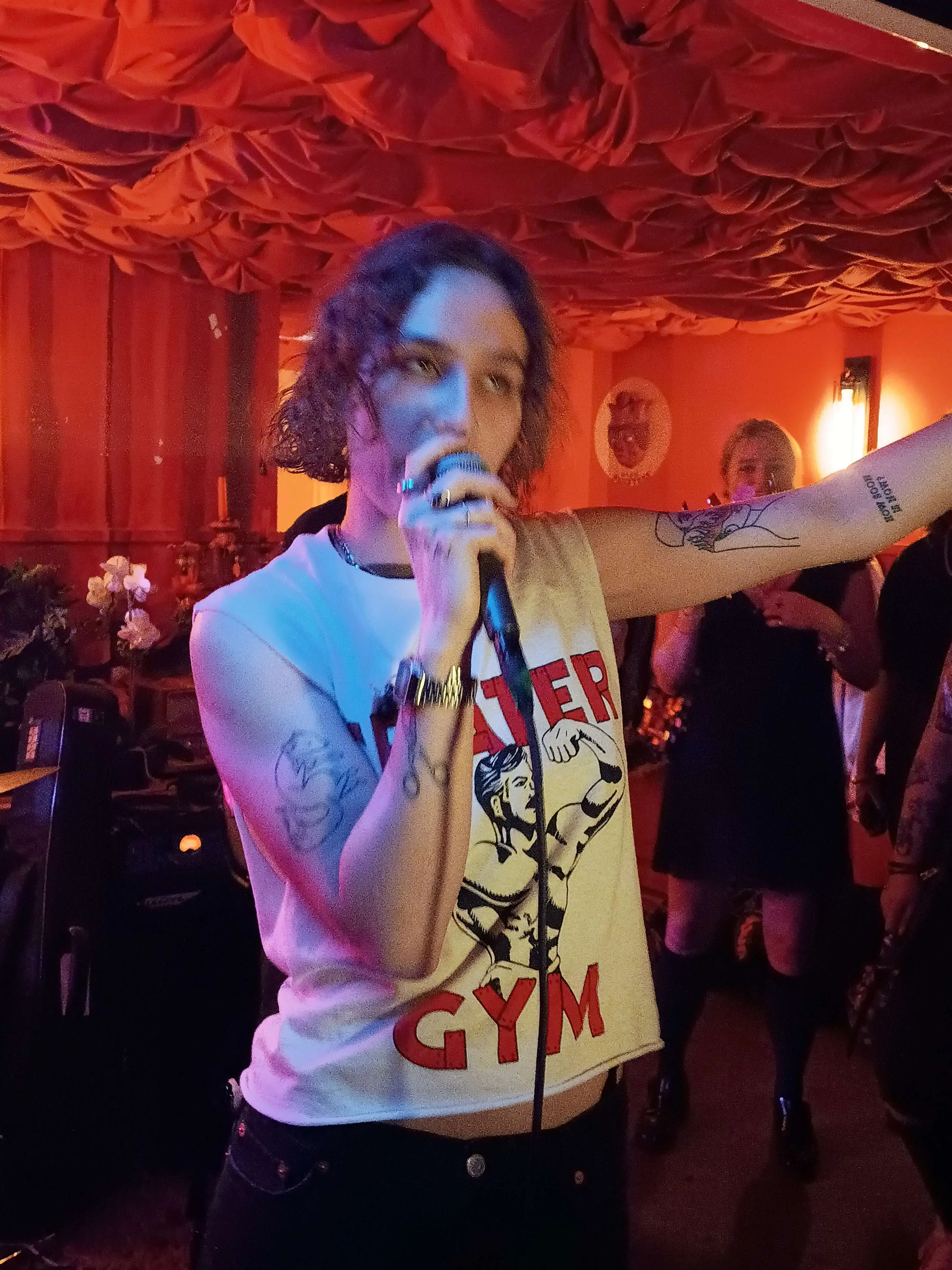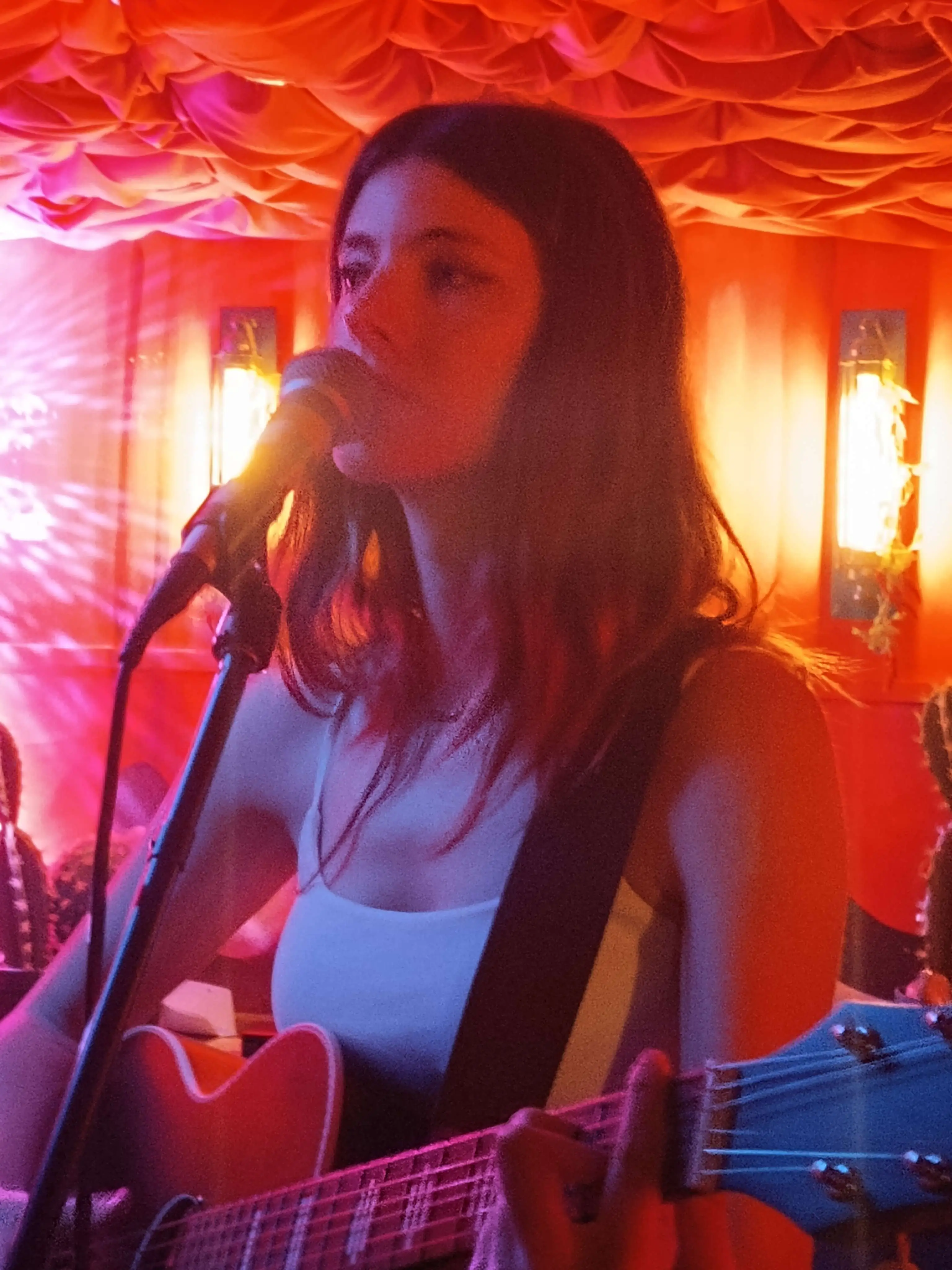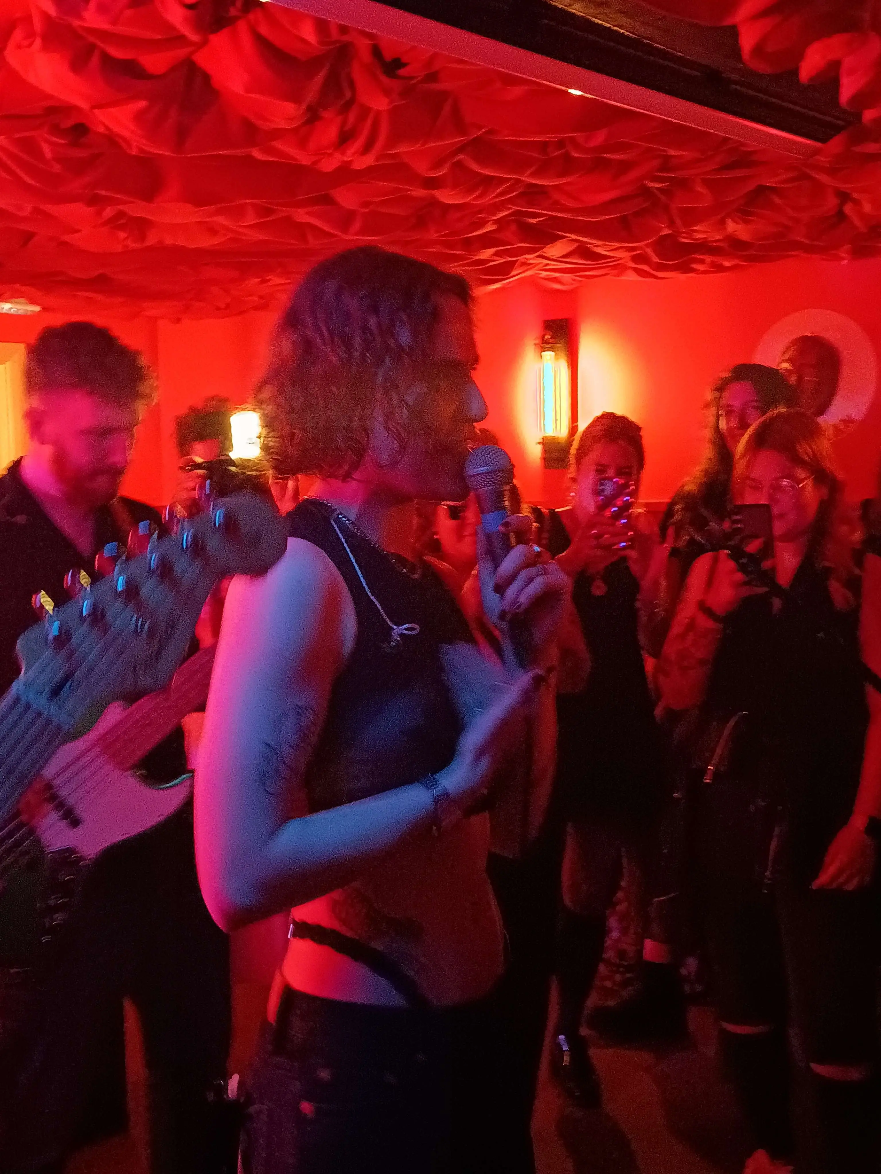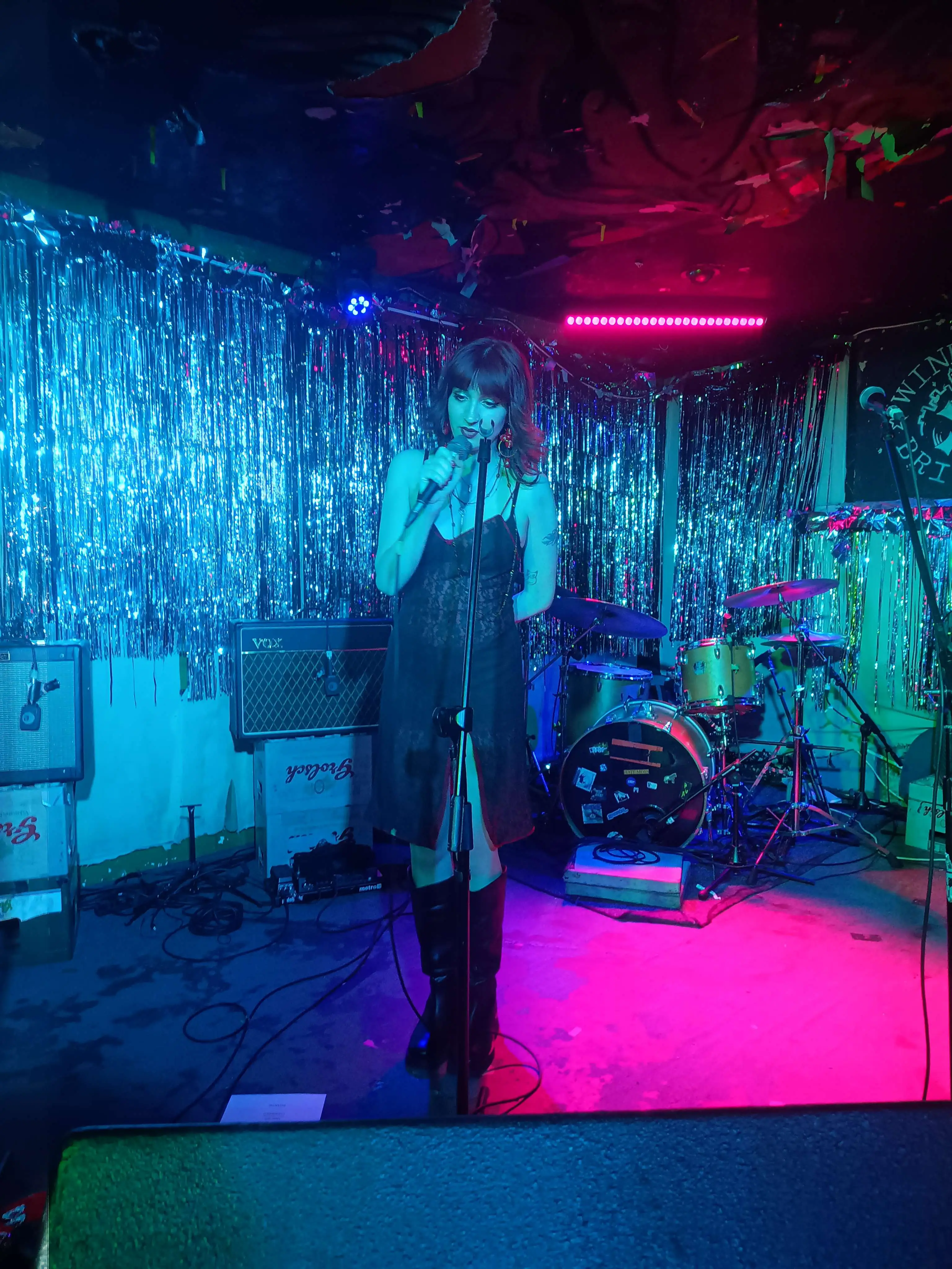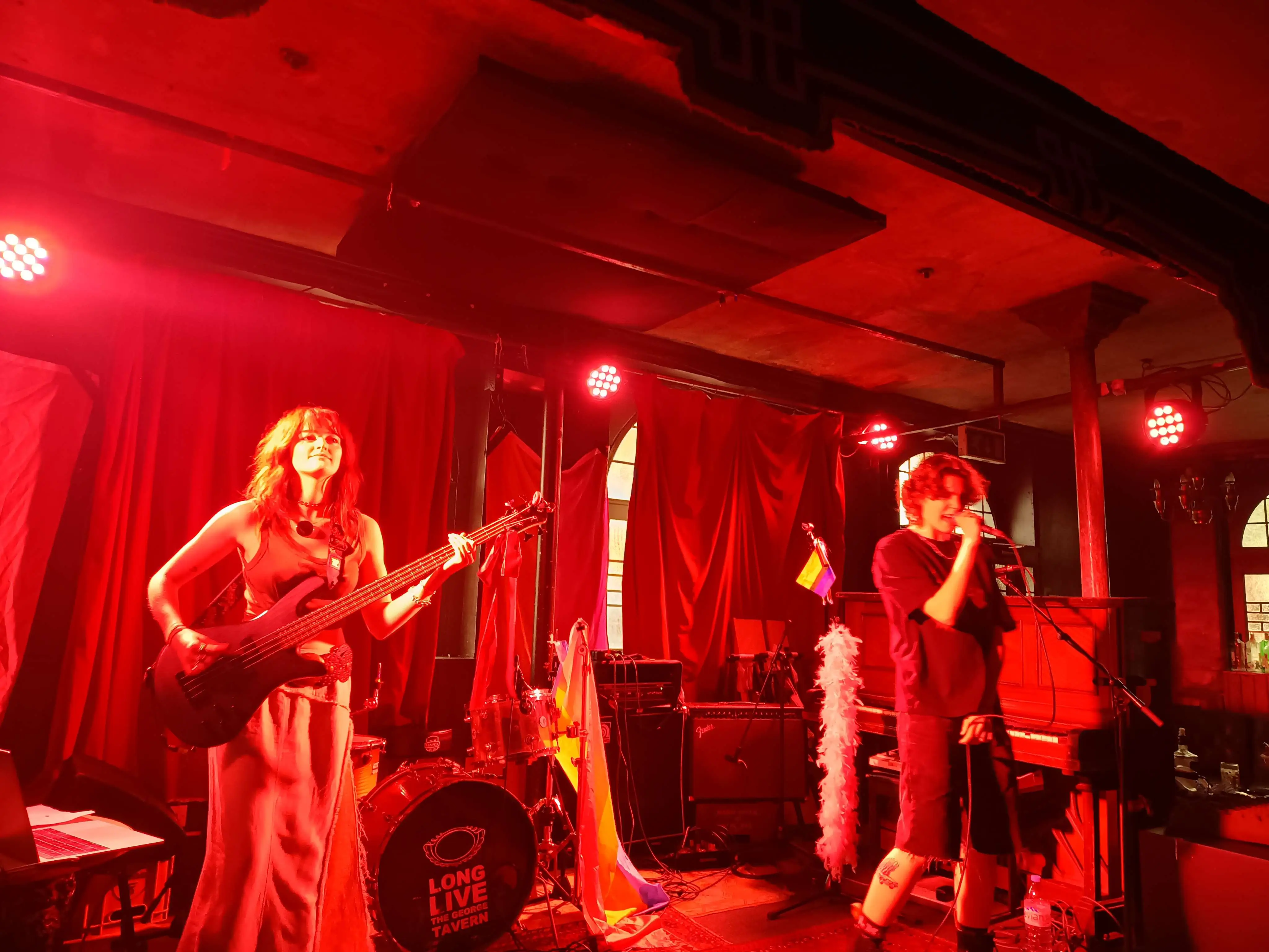 The next stops on this dirty flirty tour came in May: First off, Sapphic Sounds, Gig no.35, supporting Barcelona born Fox Gunn alongside LA based singer Holly Blair. This one stood out for a particularly opulent venue, Doña, small but gorgeous, with a sparkling sequin door and what has to be one of the comfiest sofas known to mankind, a very intimate venue the artists made the most of that the artists made the most of by encouraging us to all come in closer.