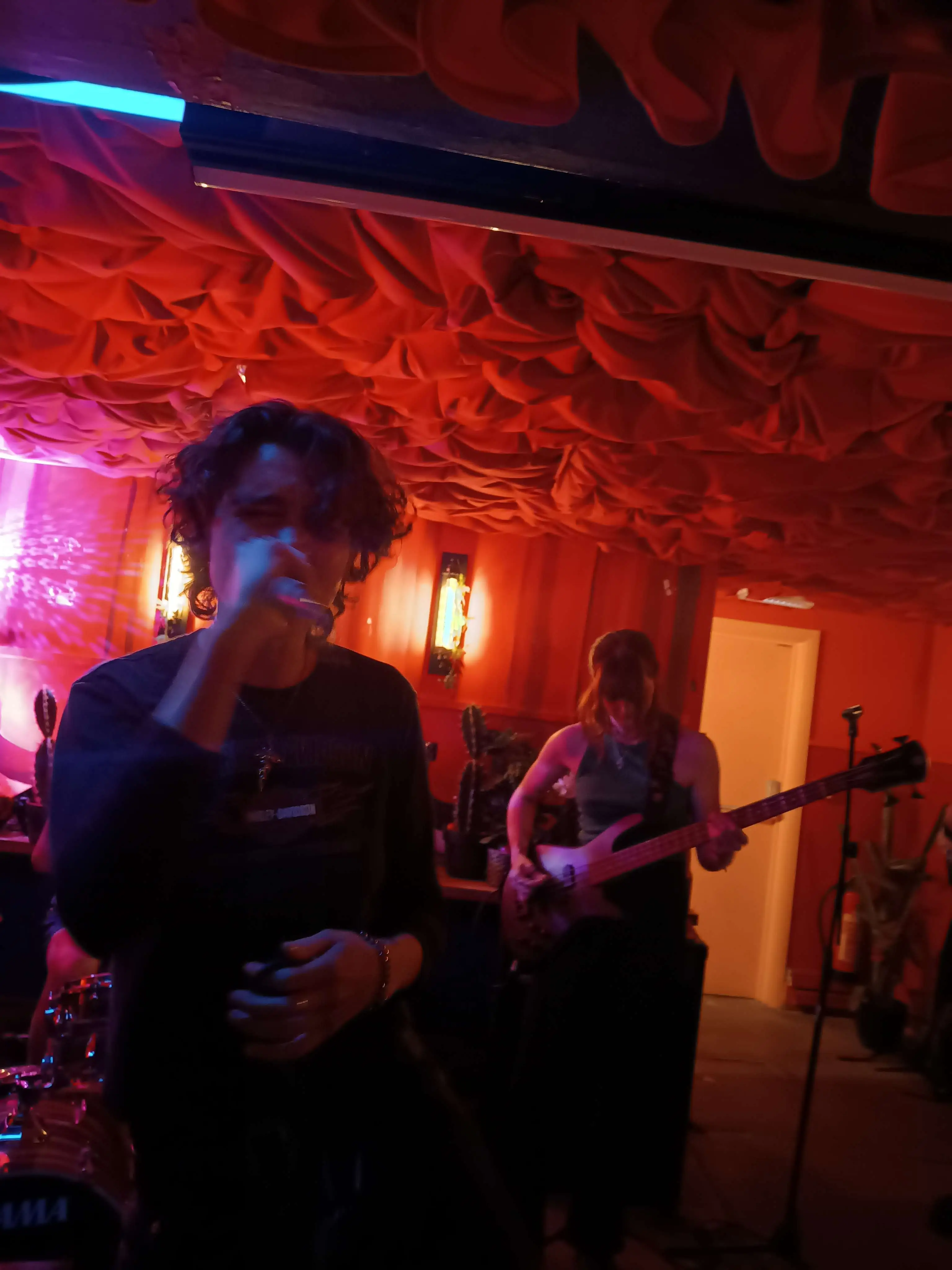 Hiccup is a duo of Jess on the vocals and Lewis on the guitar, supporting by a backing mix, they were on first and were setting up as I made my way in, and they told me that this was actually their first ever gig, the band and its early songs had been months in the works but they’d never been played to a live audience before, as well as the usual array of punters they had some friends and family along but it turned out I was their first organic audience member, no pressure then!