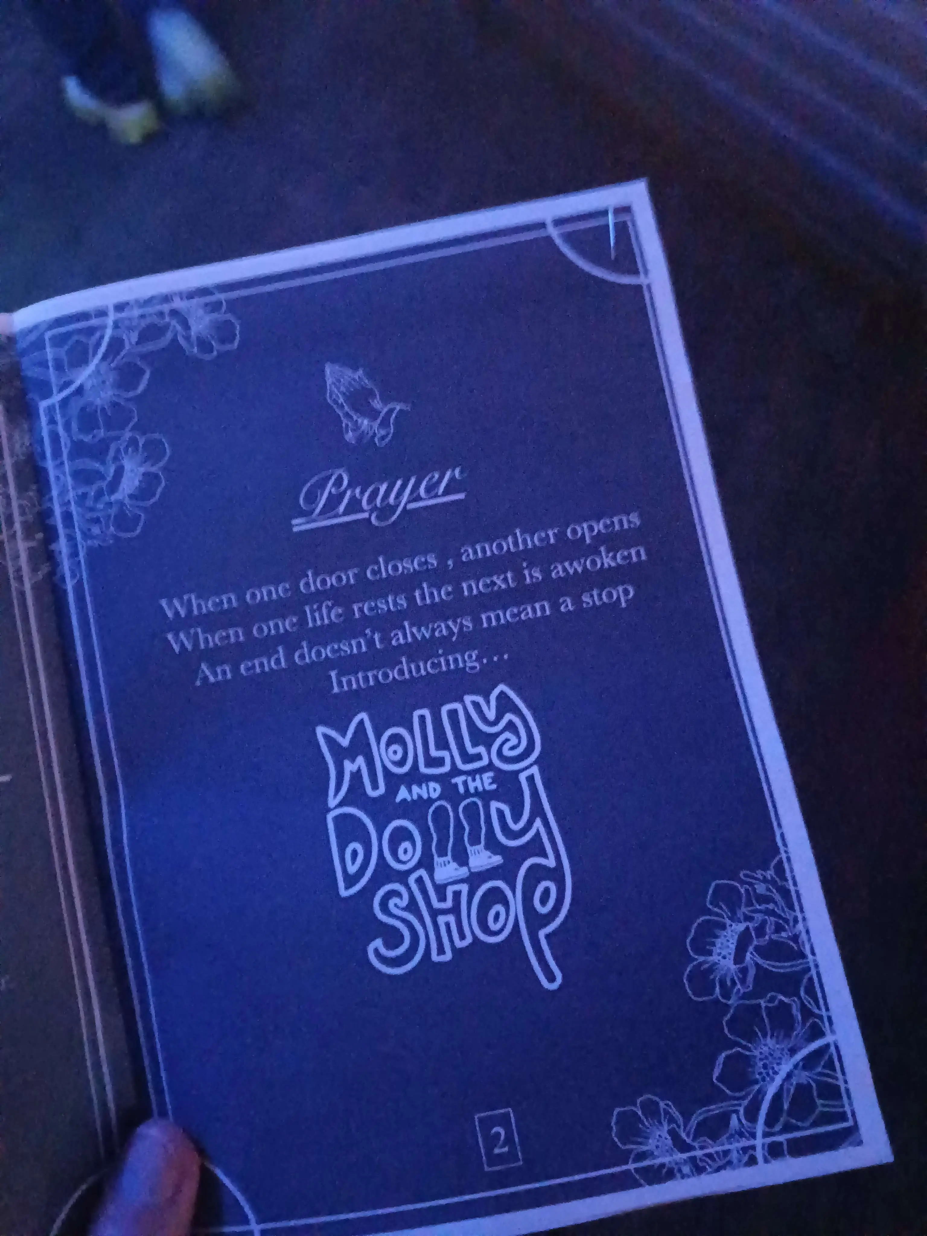From the ashes of Molly Burman the solo artist came a new band, Molly and the Dolly Shop, in all their glamour, and I got to take home a wonderfully drawn funeral pamphlet made by Willow. (See what I mean? multifaceted!)