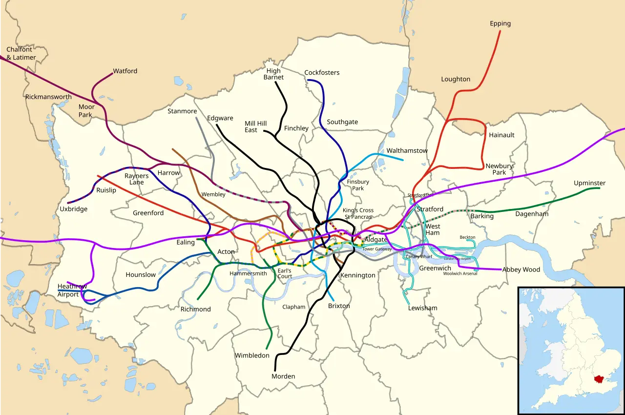 https://commons.wikimedia.org/wiki/File:London_Underground_with_Greater_London_map.svg, https://commons.wikimedia.org/wiki/File:Geographical_Overground_map_2025_with_new_lines.svg
