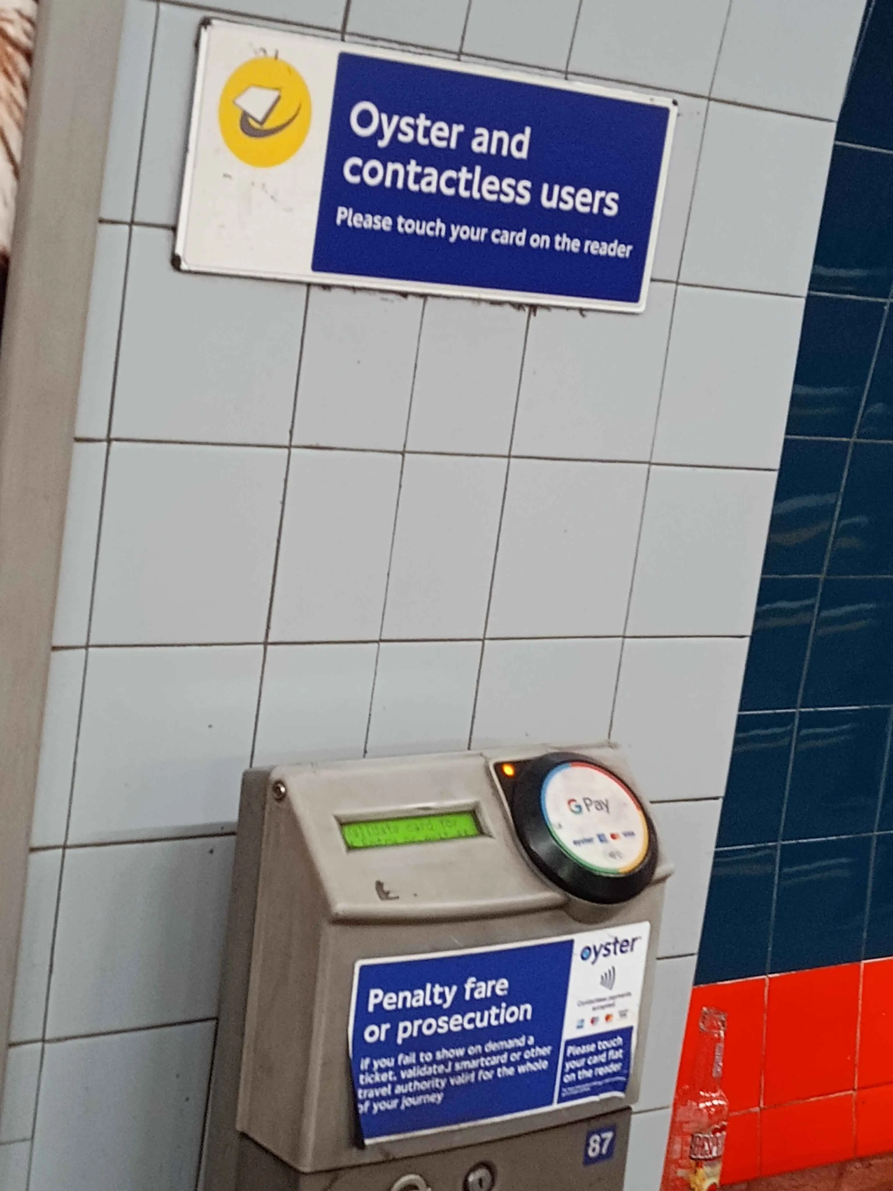 I’ve only once seen a platform reader that actually warns you about this, most other readers I’ve seen are either unlabelled or even carry signs saying “Oyster/Contactless users, Please Touch In and Out”.