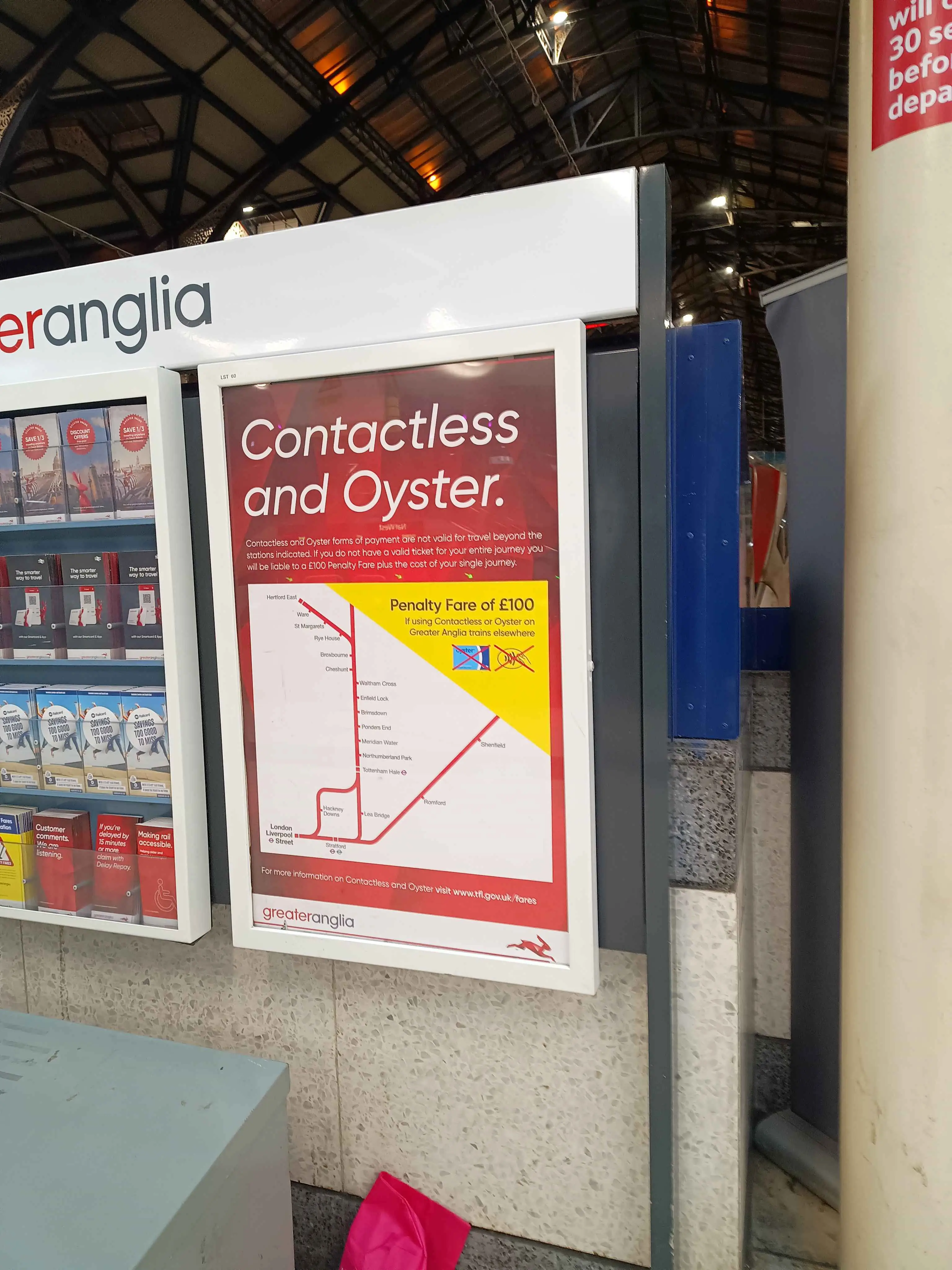 So that leaves Chiltern and Greater Anglia as the only services going through London that don’t show you where the zones start and end, womp womp. Greater Anglia does actually have a special poster that clears all this up, but I’ve only ever seen it used at a select few stations like Liverpool Street, Hackney Downs, Waltham Cross and Broxbourne, it isn’t used at Tottenham Hale.
