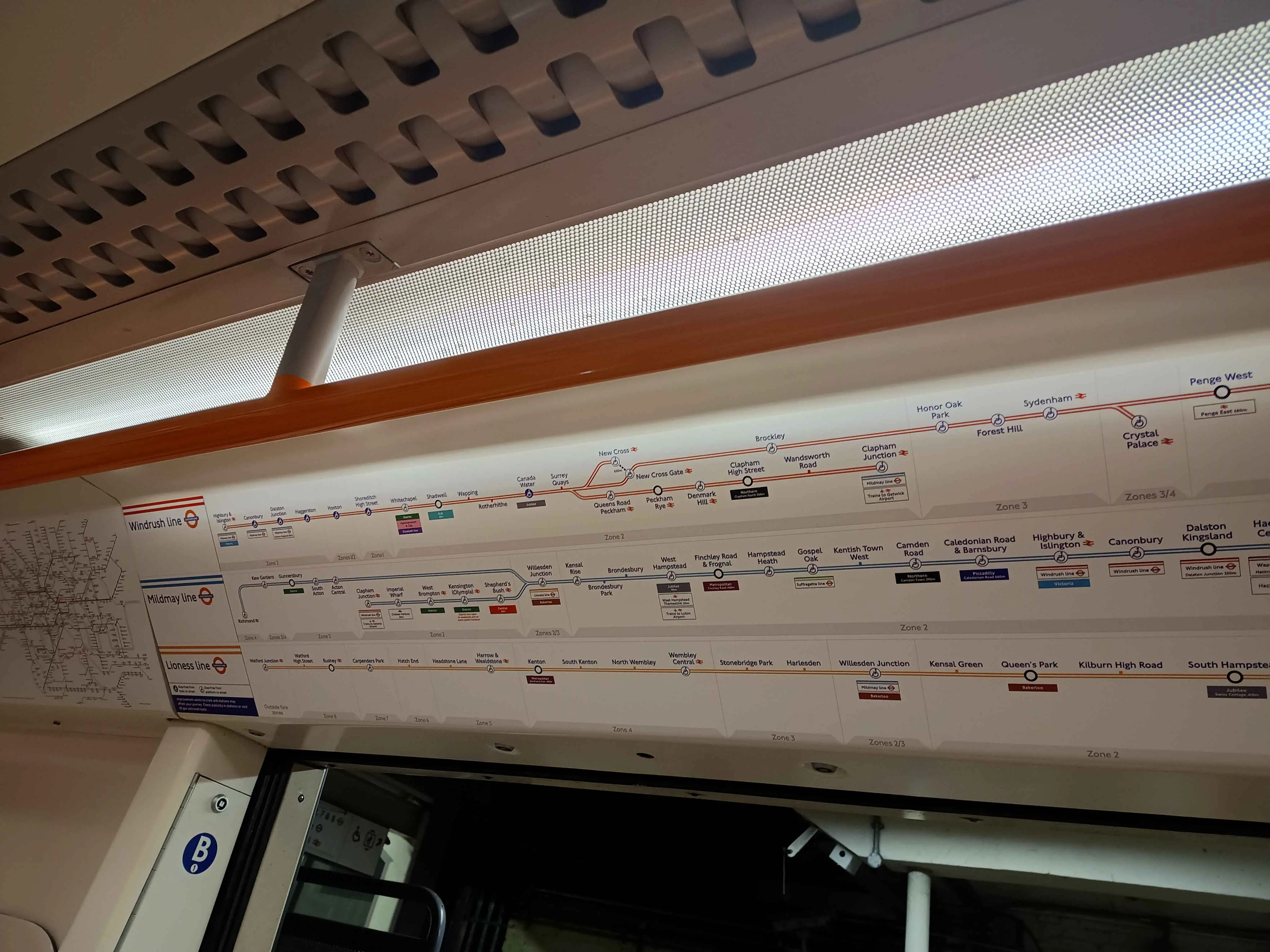 I wanted to double check that this info was on the trains themselves, not just the route maps online, so for the lines I haven’t used myself (C2C, Chiltern Rail, Gatwick Express, LNR) and ones where I just didn’t remember what the signage looked like (SWR, Southern) I looked up some videos of the trains online and they did show the zones on their route maps except for Chiltern.