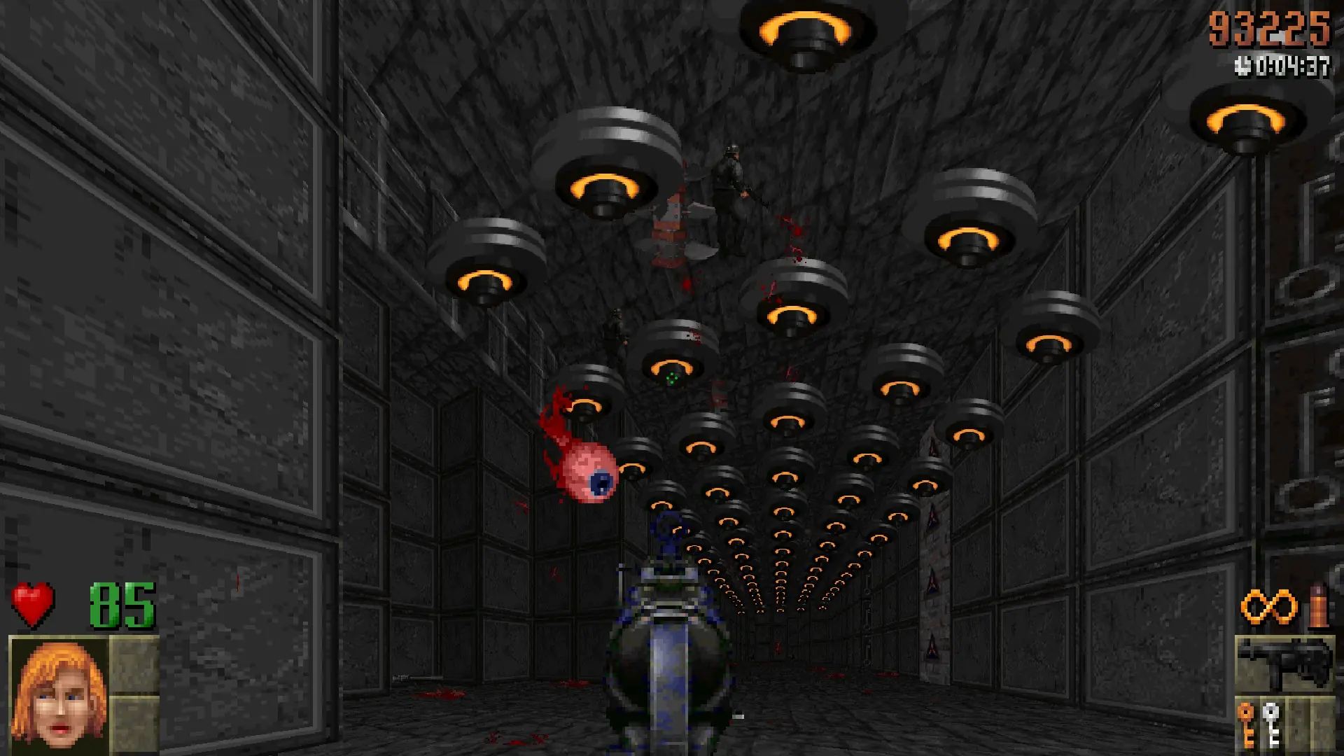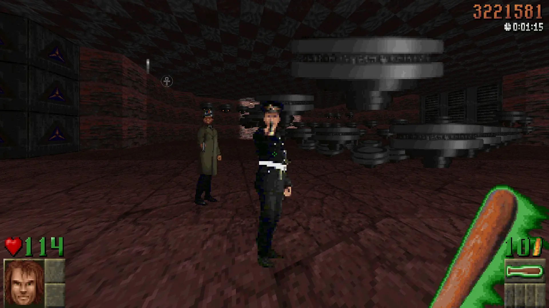 The problem was they were still tied to the Wolfenstein game engine, which at the time of the game’s release was very impressive but was rapidly becoming outdated (for example, all levels had a single height and light level, there were no floor or ceiling textures, walls were all the exact same 90 degree shape), although the DIP made many improvements to the engine to compensate for this they were still limited.