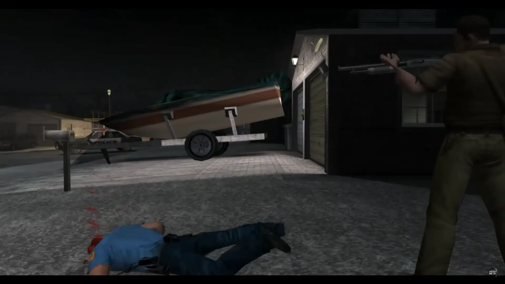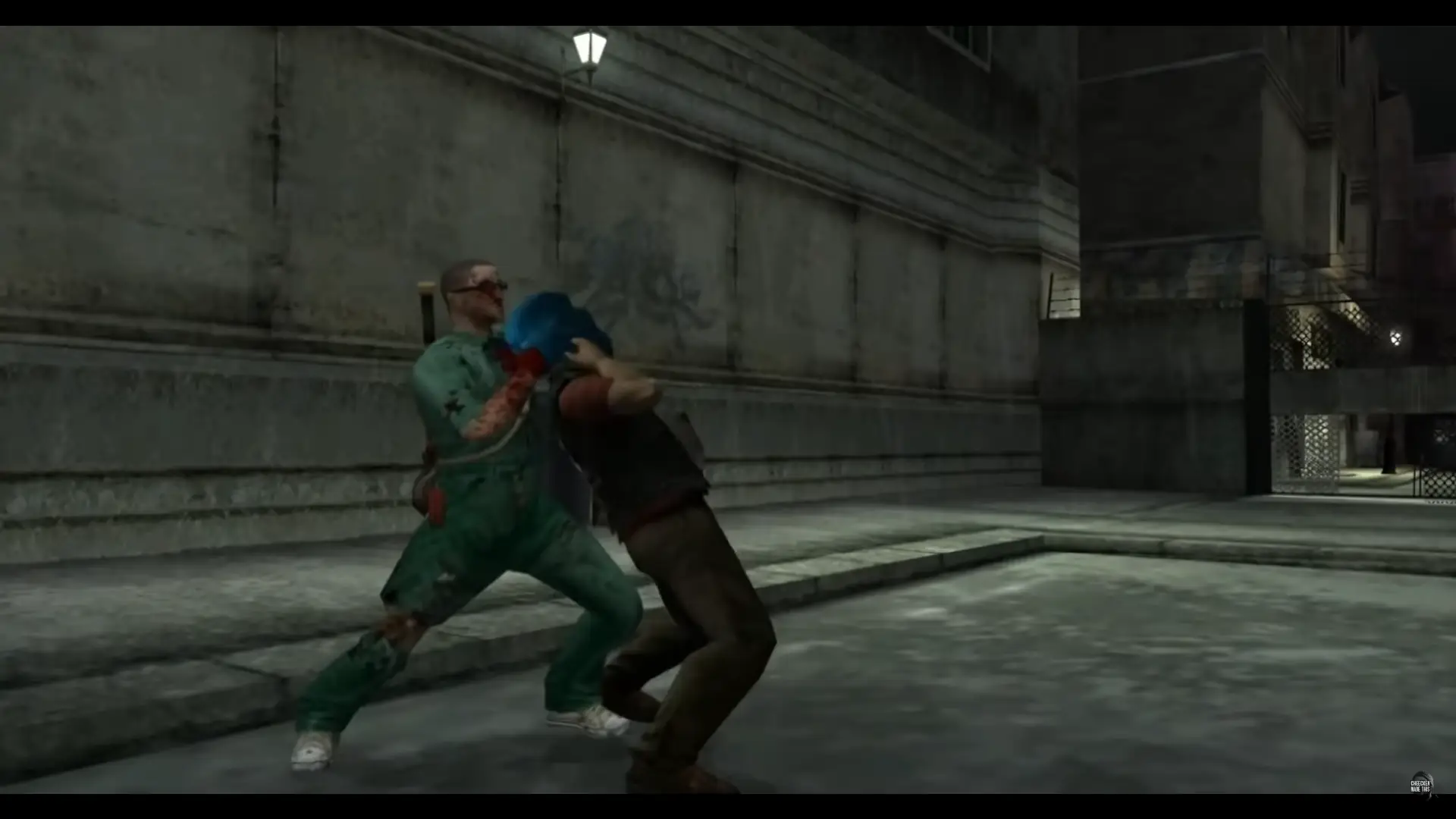 As a German cook would say, “Das Auge isst mit" [Food has to please the eye!], which is very true. The graphical presentation of Manhunt is gritty, and threatening, featuring many dank alleyways, decayed buildings and also a lot of visual effects, like the Video8 cassette noise layered on top of the player perspective together with a handheld shaky camera look, emulating a found footage film.